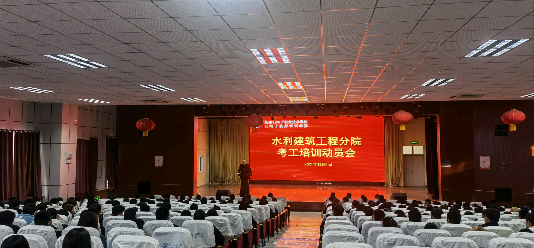 为提升水利建筑工程分院学生就业竞争力,满足学生一岗多证的需求,进一步强化学生专业知识技能,水利建筑工程分院于2021年12月1日在综合楼四楼阶梯教室召开举办考工培训动员大会。参加本次大会的有水利建筑工程分院弓中伟院长、张婷副院长以及19级班主任和全体学生。