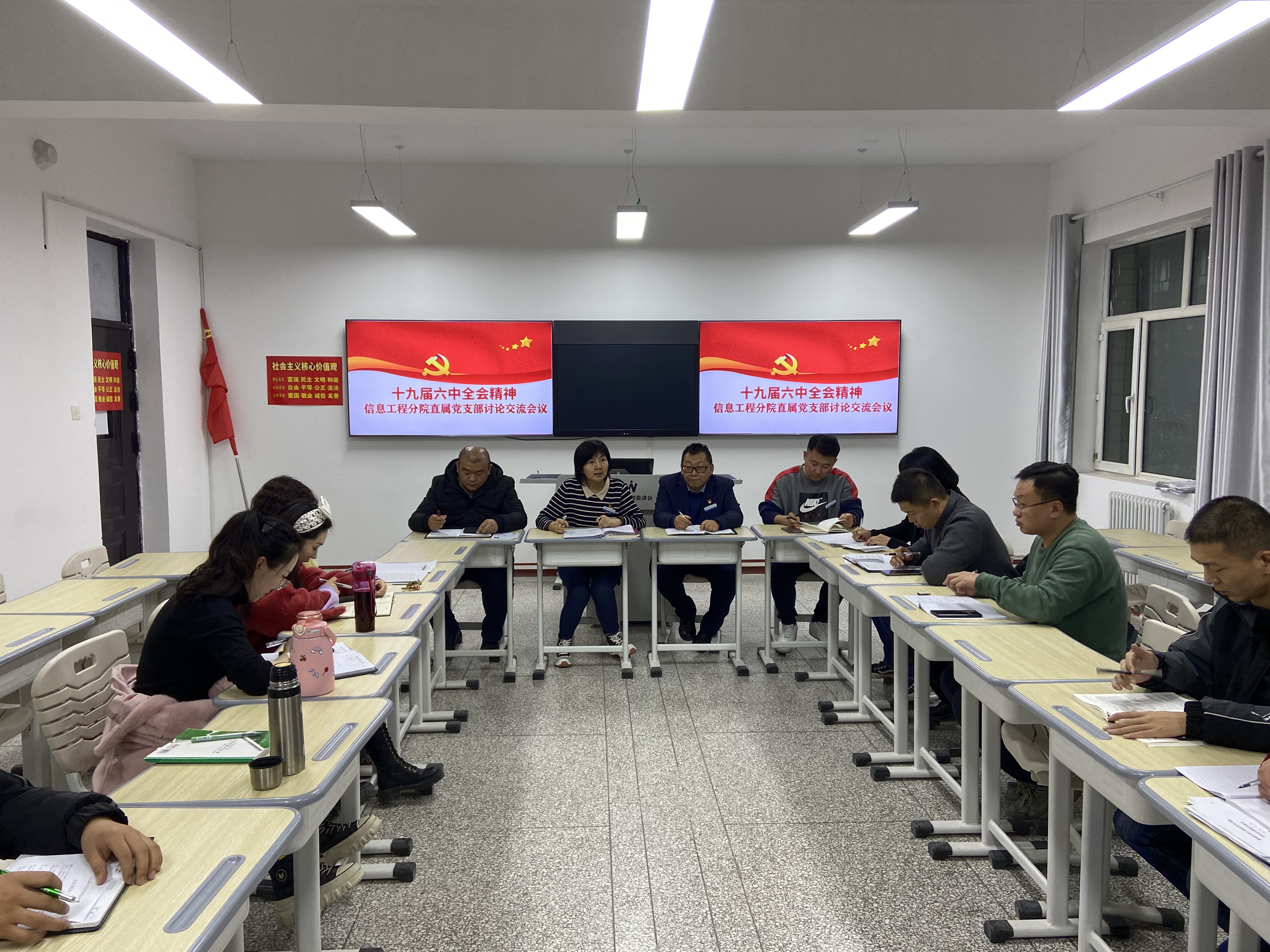 为深入学习贯彻党的十九届六中全会精神,12月3日,信息工程分院召开十九届六中全会精神学习交流会。会议由分院党支部书记马晓燕主持。