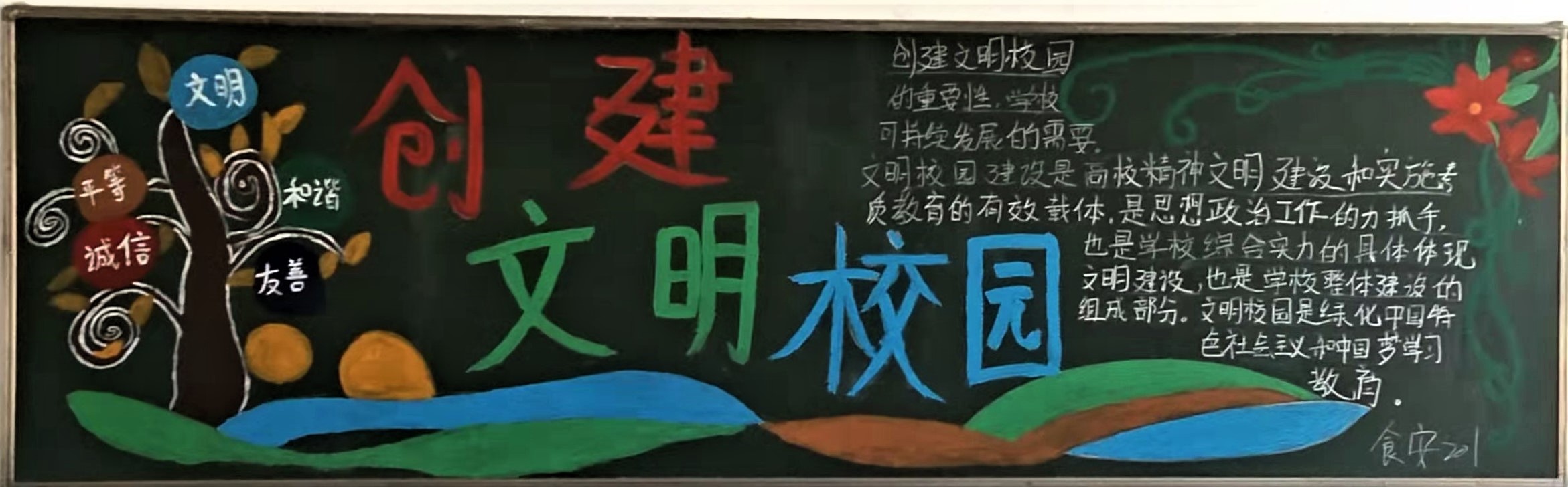 目前分院全体师生都积极投入到文明校园的创建活动中来,用自己的实际行动,共同创造一个健康、文明、和谐、有序的校园环境,为共创文明校园、争做文明师生,建设和谐文明的城市贡献自己的一份力量。