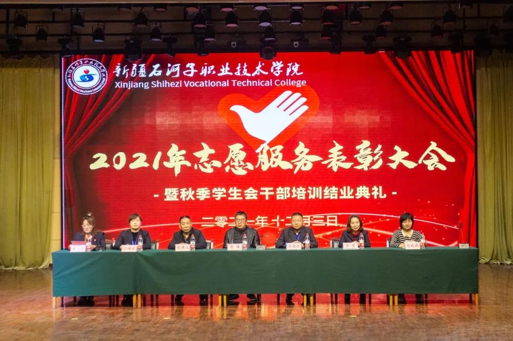 2021年,学院志愿服务时长超八万小时,青年志愿者积极参加自治区职业技能大赛、兵团职业教育活动周、兵团大学生暑期三下乡、服务社区、学院各类考试、大型赛会、疫情防控等各项志愿服务活动,广大志愿者以团结协作的精神、真诚美好的微笑、周到细致的服务,为学院赢得了荣誉,展示了学院学子的良好形象,受到了社会各界的广泛好评,涌现出一批优秀的青年志愿者和志愿服务先进集体。大会对优秀青年志愿者和志愿服务先进集体进行了表彰。