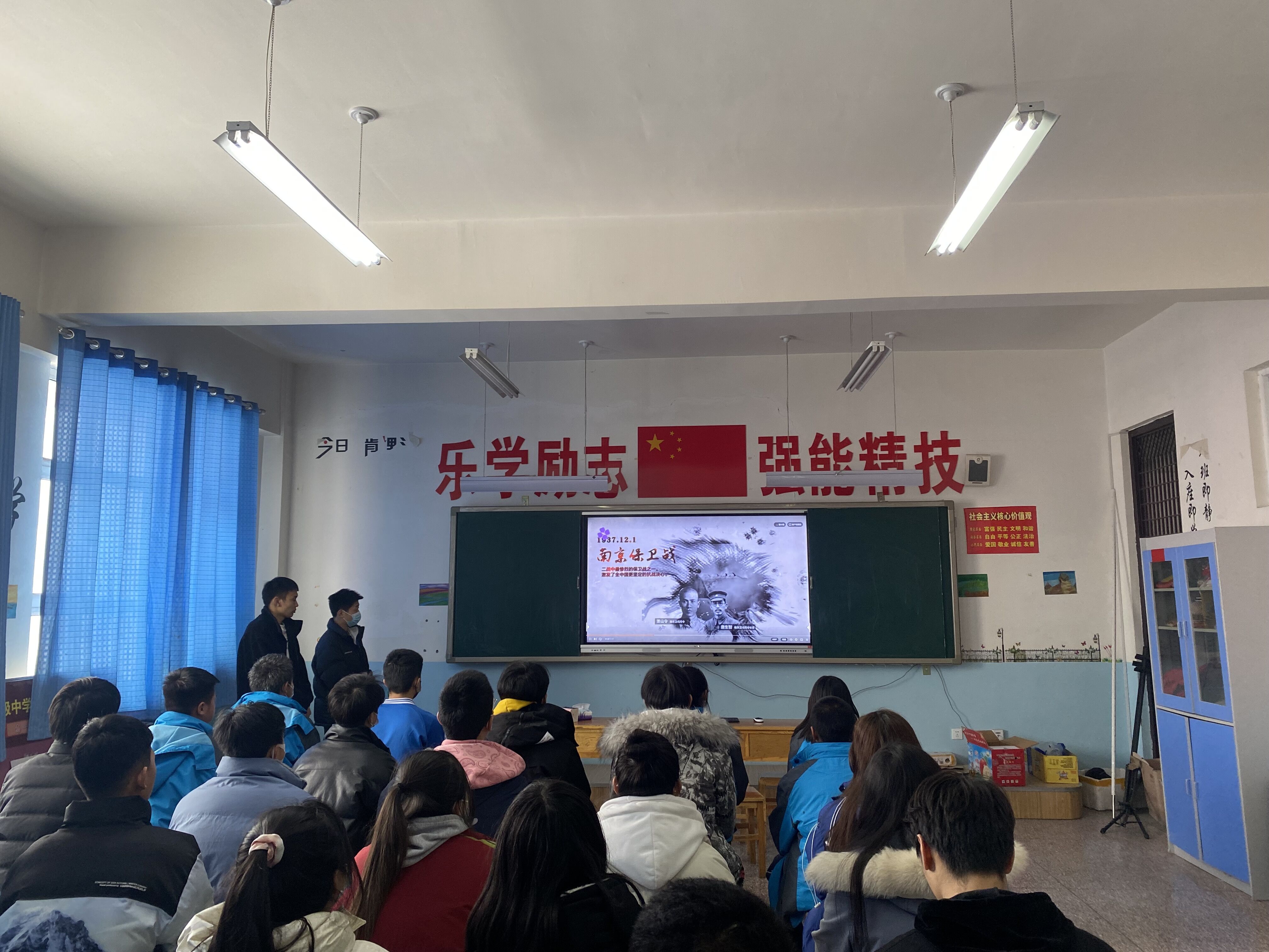 12月13日早上九点,各班学生代表于国旗台前参与了“国家公祭日”系列活动。活动开始,为缅怀南京大屠杀的无辜死难者,缅怀所有惨遭日本侵略者杀戮的死难同胞,缅怀为中国人民抗日战争胜利献出生命的革命先烈和民族英雄,升国旗降半旗表示哀悼,在场师生纷纷在西阶教公祭日和平许愿墙上签名。参与签名的有中职分院副院长马木提、学生管理办公室主任周吉新、团总支书记马胜兰,接着各班代表有序上台签名。最后团总支书记马胜兰说到,开展国家公祭日悼念活动,就是告诫世人,不要忘记那段屈辱的历史,激发同学们潜在的爱国意识,并引导教育同学们认真学习,成为栋梁之才,振兴祖国。
