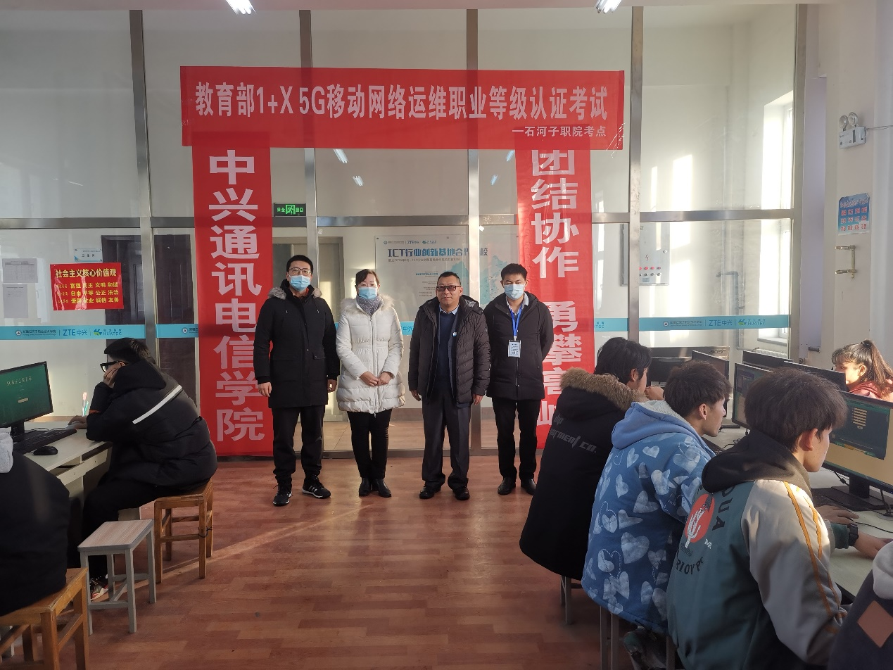 为贯彻落实《国家职业教育改革实施方案》和《职业技能提升行动方案(2019-2021)》等文件精神,推进人才培养培训模式和评价模式改革,提高人才培养质量,全面推进落实1+X证书试点工作,信息工程分院-中兴通讯电信学院于2021年12月10日成功举办了1+X5G移动网络运维职业技能等级证书(中级)考核的认证考试,本次考核共30名2020级移动通信技术专业的学生参加了考试,到考率100%。本次考证得到了学院的高度重视,教务处副处长徐海霞、信息工程分院院长荣喜丰、教务处尹升鹏老师莅临现场指导考试工作。