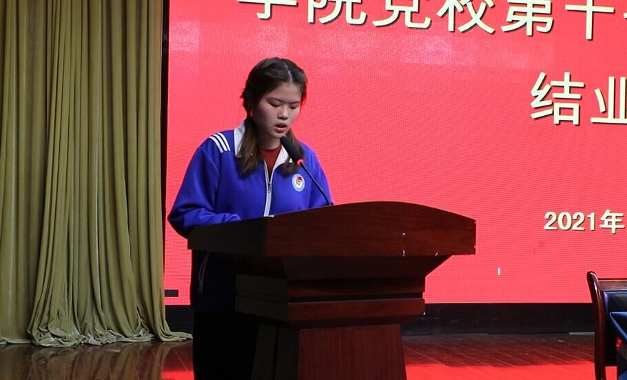 结业典礼在庄严的国歌声中拉开帷幕,学院团委书记蒋小玉宣读学院党校第十七期党课培训班优秀学员名单,34名党课学员获得了优秀学员称号,参会领导为优秀学员代表颁发了荣誉证书并合影留念。卢霄霄同学代表优秀学员代表上台发言表示,通过党课学习对党的认识从朦胧走向了清晰,明白了不仅要坚持理论学习,更应在实践中不断总结经验,尽快成为一名合格、优秀的共产党员。