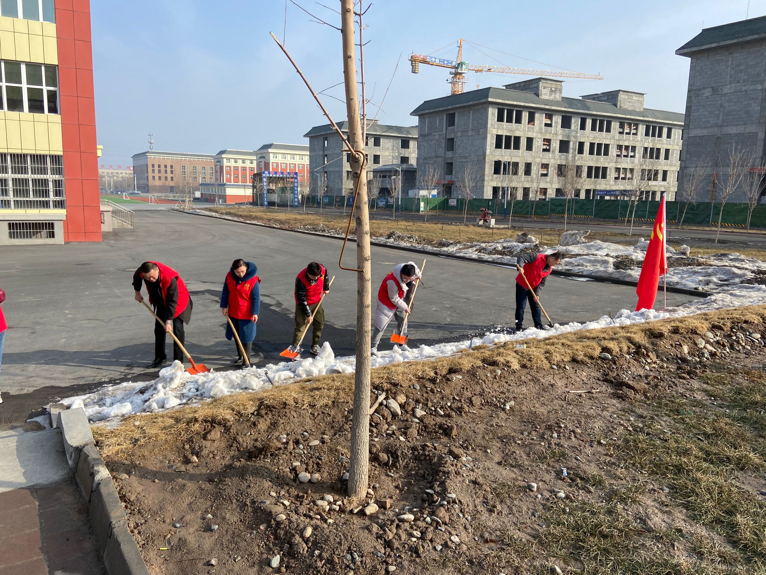 活动开始,俞峰书记和弓中伟院长为女教师送上节日祝福。张婷副院长再次向大家普及了“三八”妇女节的由来,希望大家发挥“半边天”的巨大作用,开拓创新,奋发有为,时刻展示现代女教师的精神风貌。全体教师共同观看了妇女权益保障法、中华人民共和国家庭教育促进法、首部反家暴法等视频内容,学习了师市优秀家风故事,在场教师纷纷发表感想。俞峰书记总结说,在家庭里我们要弘扬百善的传统美德、尊老爱幼、夫妻和睦;在工作中,我们要爱岗敬业,不断追求进步,主动作为。全体教师前往教学楼广场,清理路沿石积雪。在积雪清扫现场,大家身穿红马甲,有的拿铁锹,有的拿扫帚,重点对路沿区域开展除雪作业。大家齐心协力、分工明确、干劲十足,有序清理道路积雪,及时为师生提供洁净、便利、安全的出行环境。