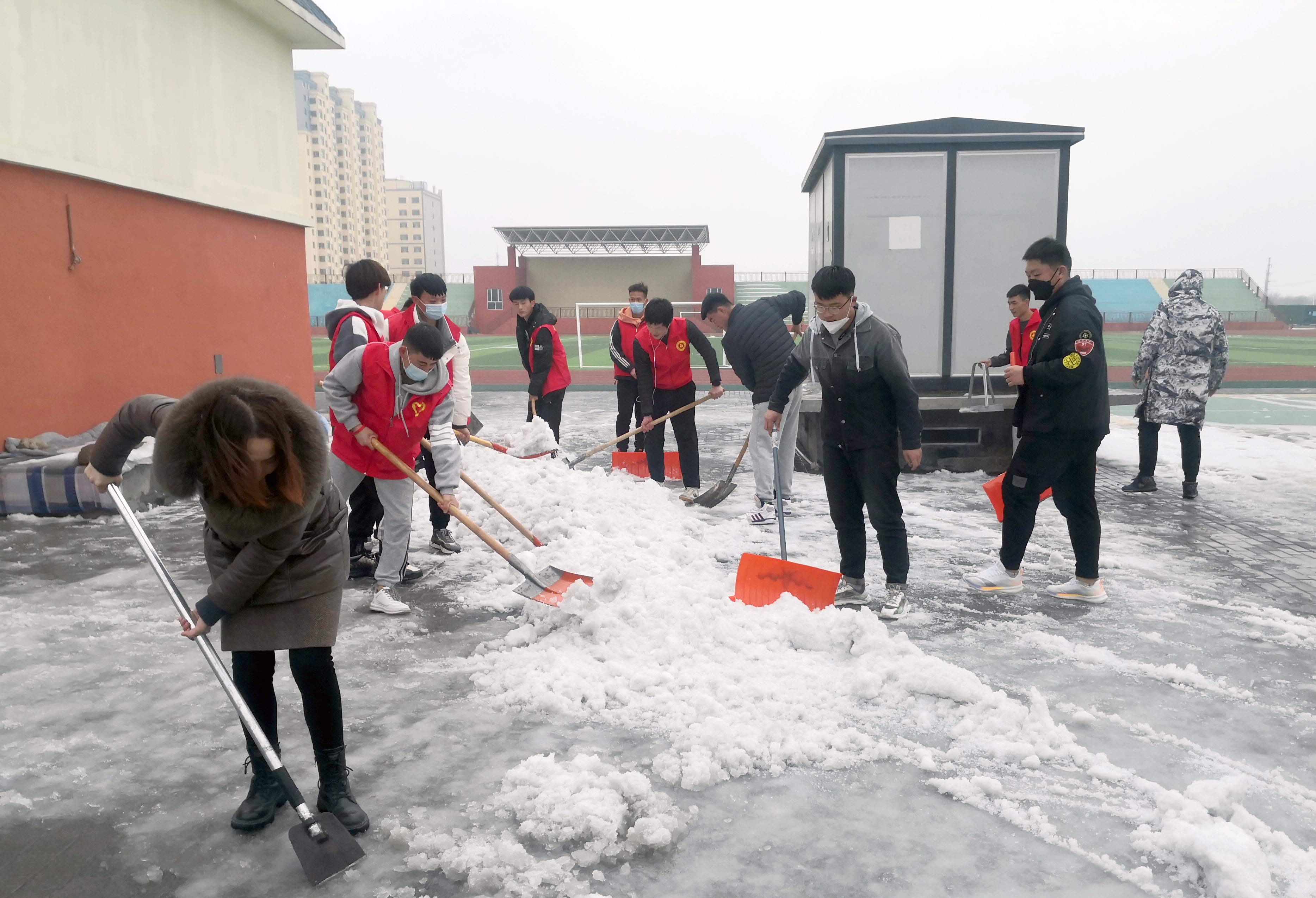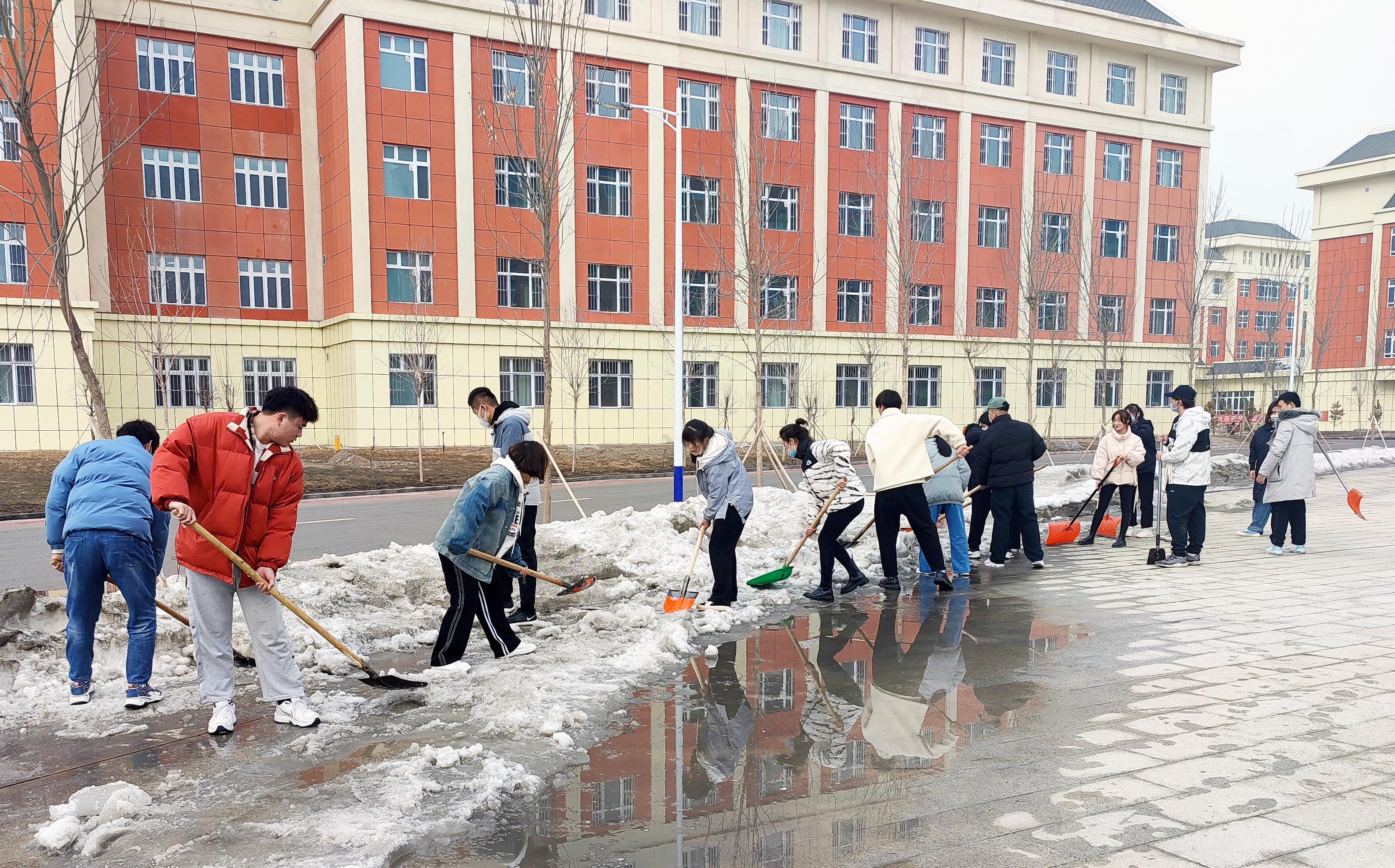 在志愿服务过程中,同学们分小组明确任务分工,有序开展校园环境卫生大扫除,对分院班级教室、室外环境区进行了彻底清扫。分院党总支书记李芳带领同学们打扫室外积雪,身体力行,开展劳动教育。经过一下午的志愿服务,同学们的辛勤汗水让分院卫生环境“洗去旧尘换新颜”,每一位成员脸上都洋溢着快乐的笑容,在劳动中进一步传承和发扬了无私奉献、乐于助人、艰苦奋斗的精神。