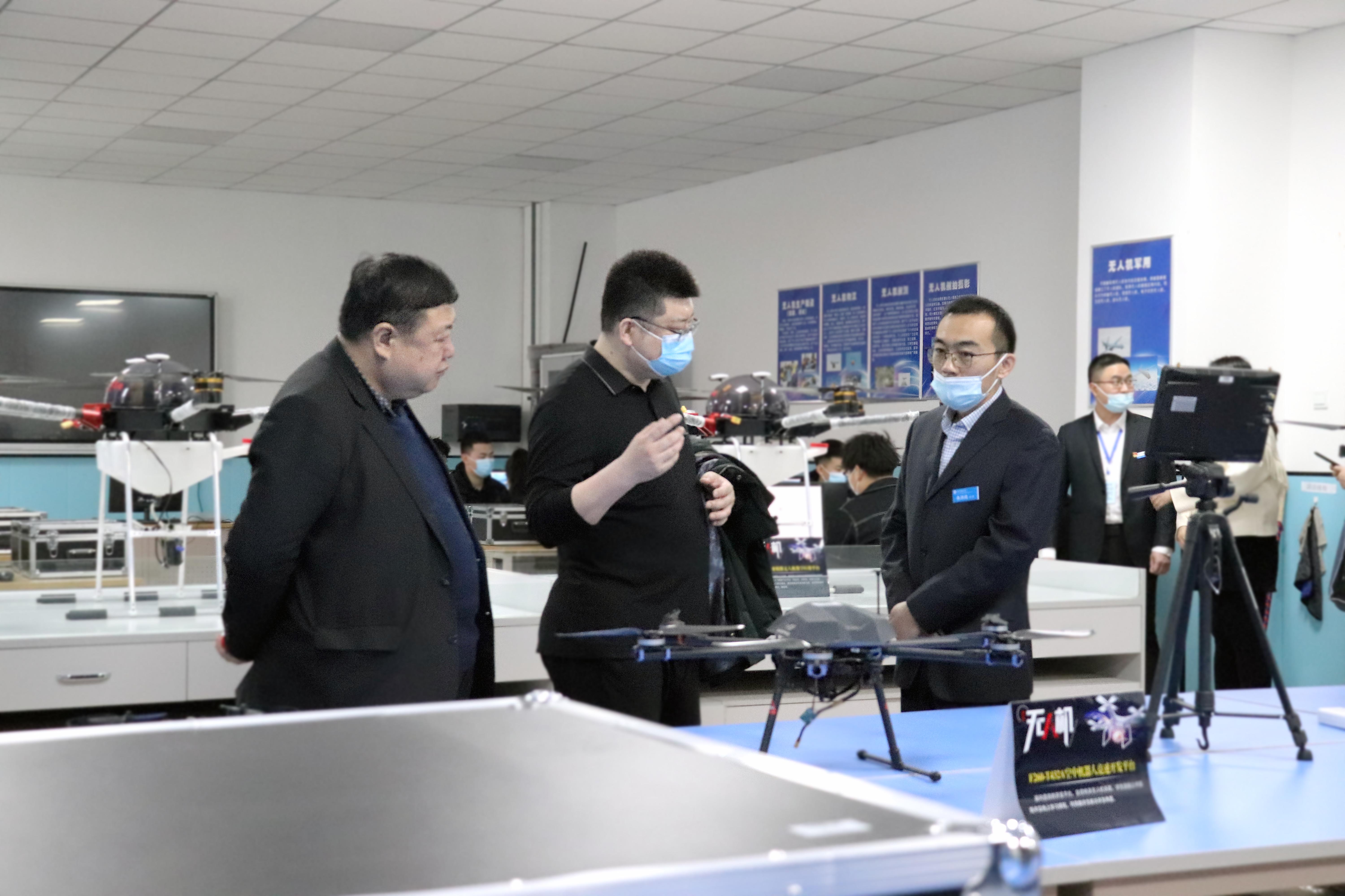 祁副局长一行首先参观了学院的焊接实训室、无人机实训室、工业机器人实训室等,专业负责人向领导汇报了实训室建设、实训室功能及学生实训课程授课情况。领导一行充分肯定了学院在实训基地建设上做出的成绩,同时也指出,实训基地的建成顺应了社会发展,希望学院充分利用好实训基地,为区域培养出更多复合型技术技能人才。