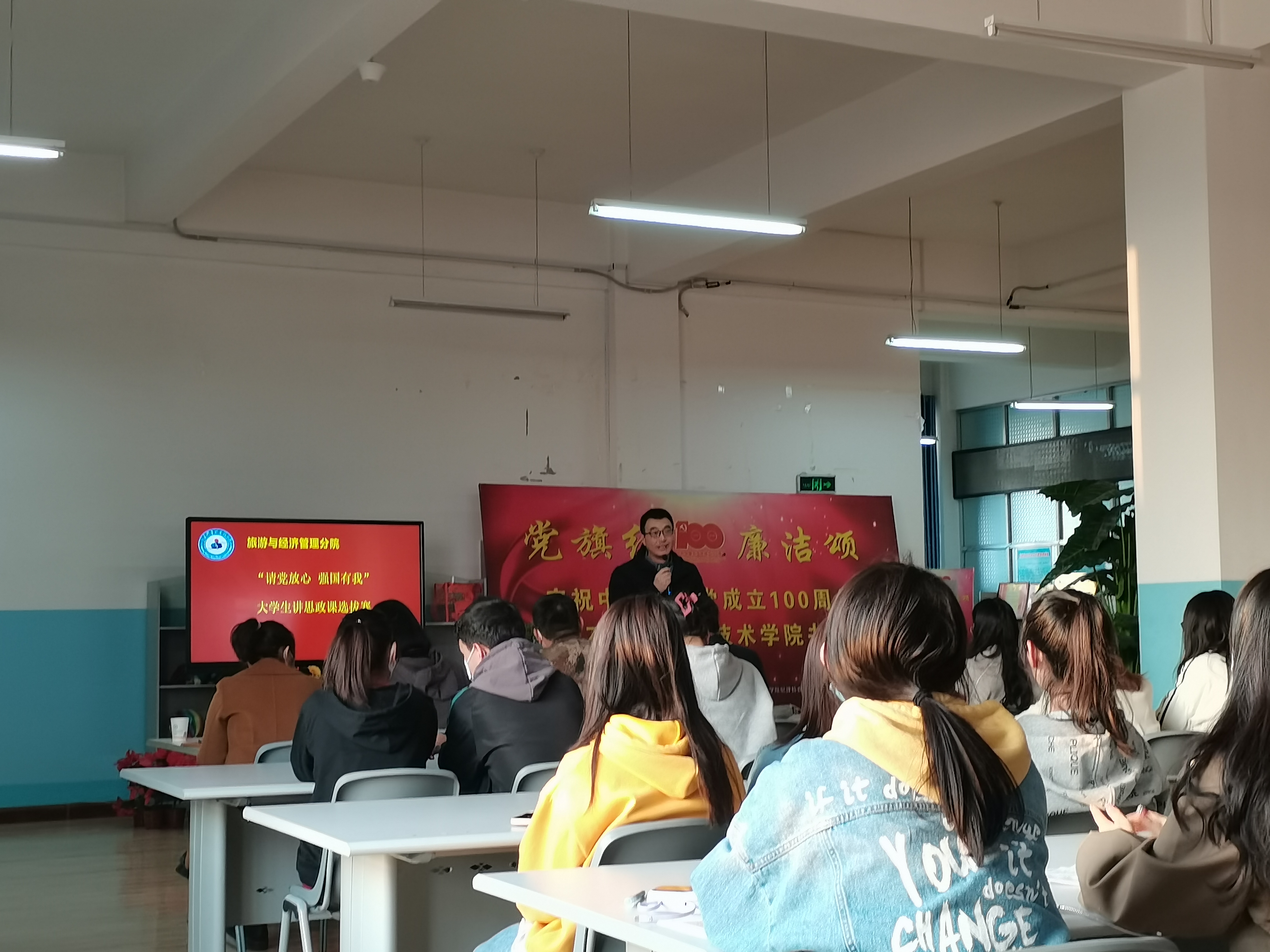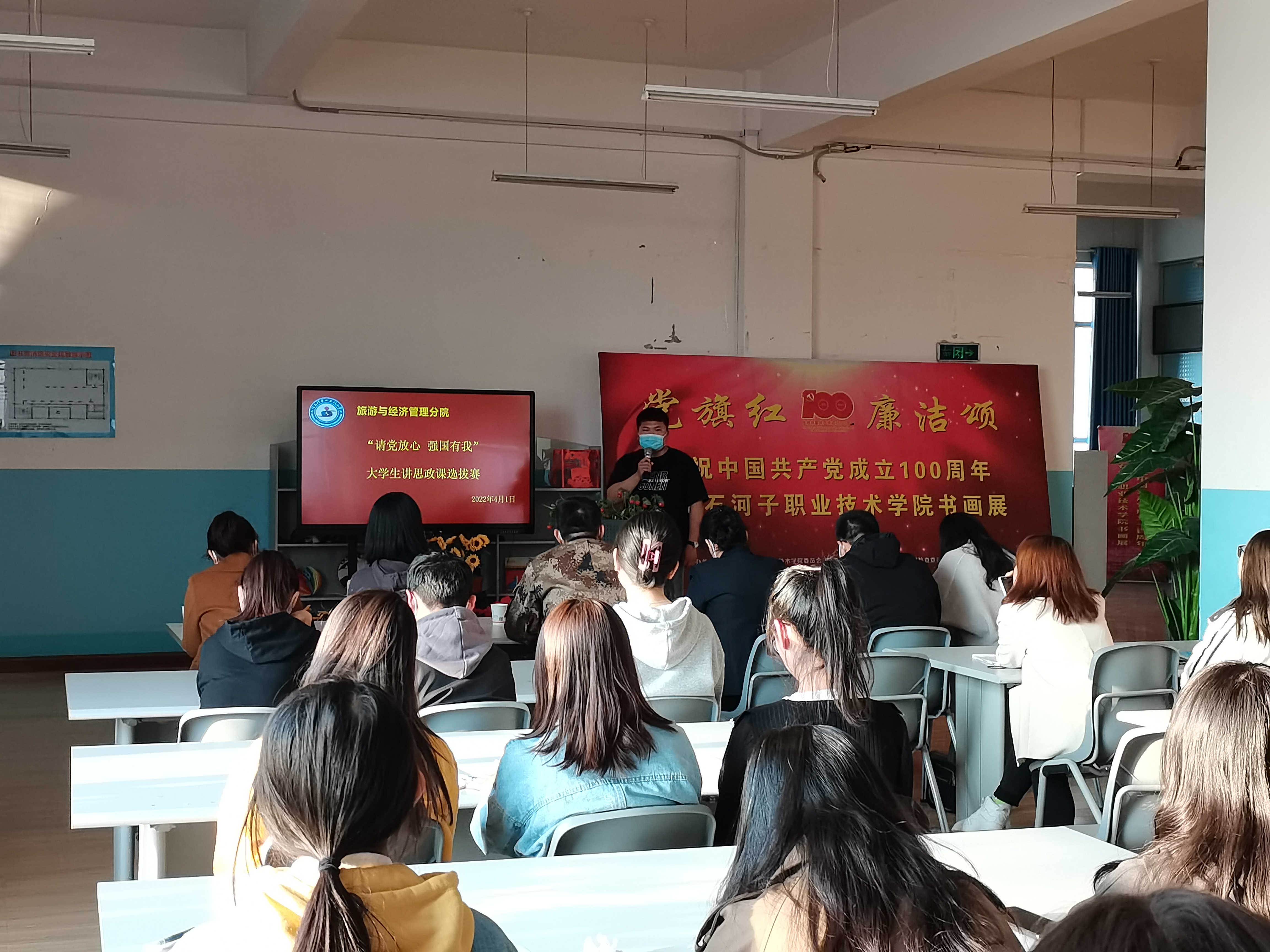 根据学院“请党放心 强国有我”学生讲思政课公开课展示活动要求,旅游与经济管理分院高度重视,于2022年4月1日下午七点,在图书馆开展了分院选拔赛,力争推荐优秀团队参加学院比赛。图书馆馆长陈建红、士官分院教官张伟、思政部老师梁灯、殷波、胡杨子及分院学管老师担任了选拔赛评委。