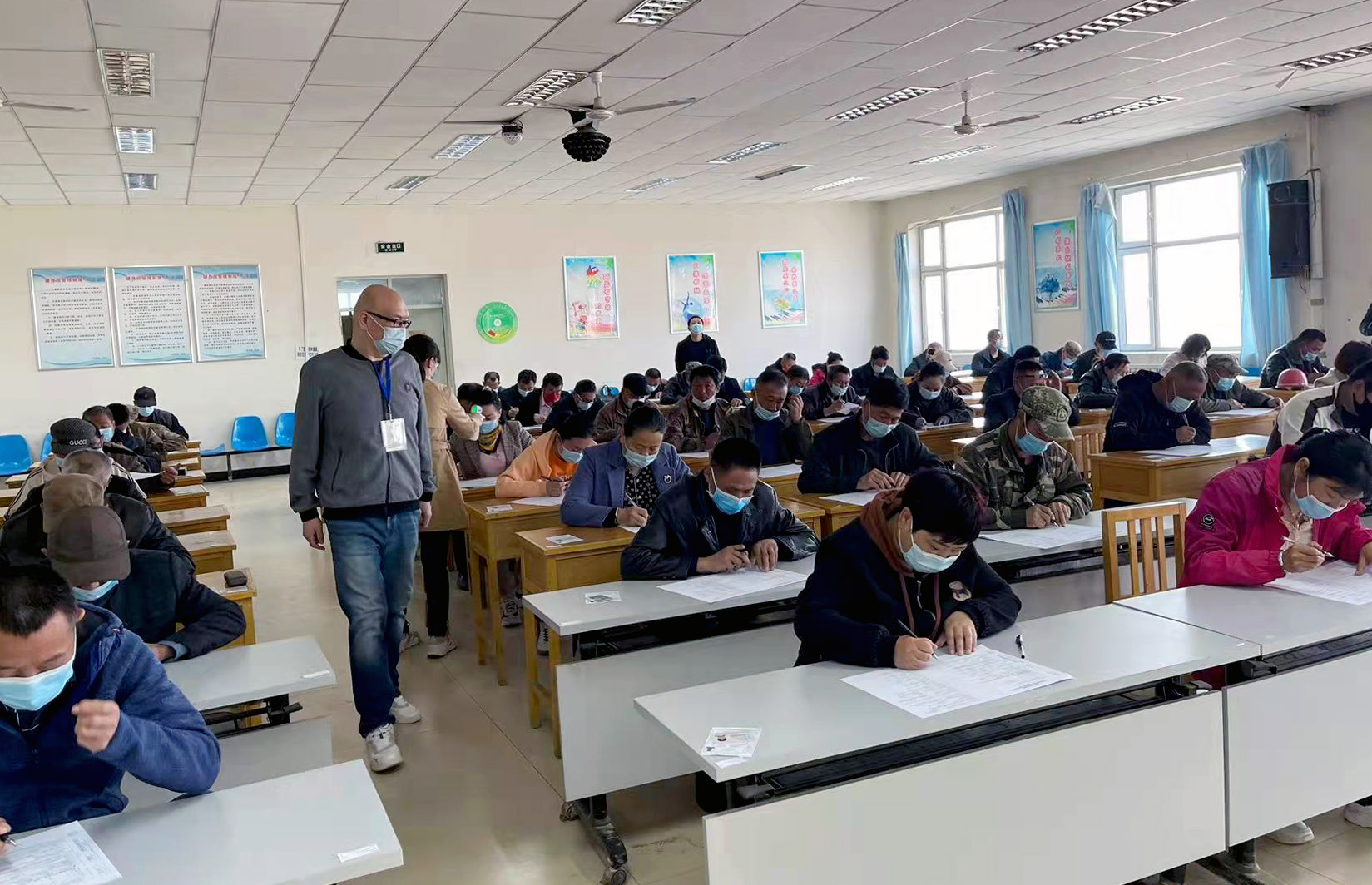 技能培训分院为了保证考试顺利开展,严格按照上级和学院疫情防控要求技能等级认定考试要求做了充分的安排,制定了《职业技能认定考试防控预案》,严格对考场进行消毒,在考生进入场前,逐一查验行程码、核酸报告,测量体温,监考人员和考生全程佩戴口罩。