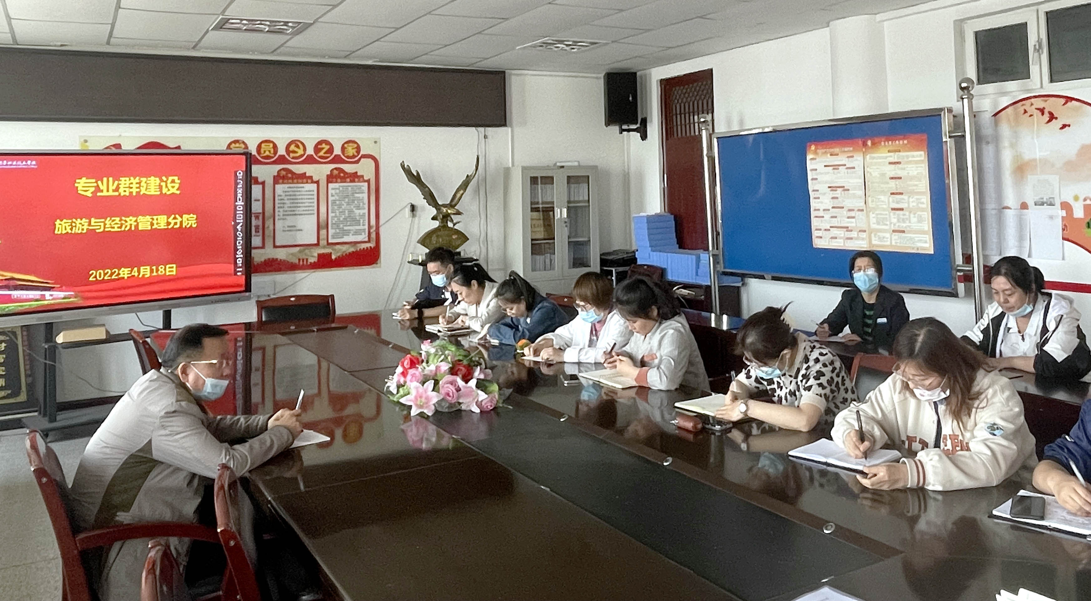 2022年4月18日,旅游与经济管理分院开展“双高”专业群建设研讨会。栗劲松院长、综合办教师、各教研室主任及各试点专业负责人参加了本次研讨。