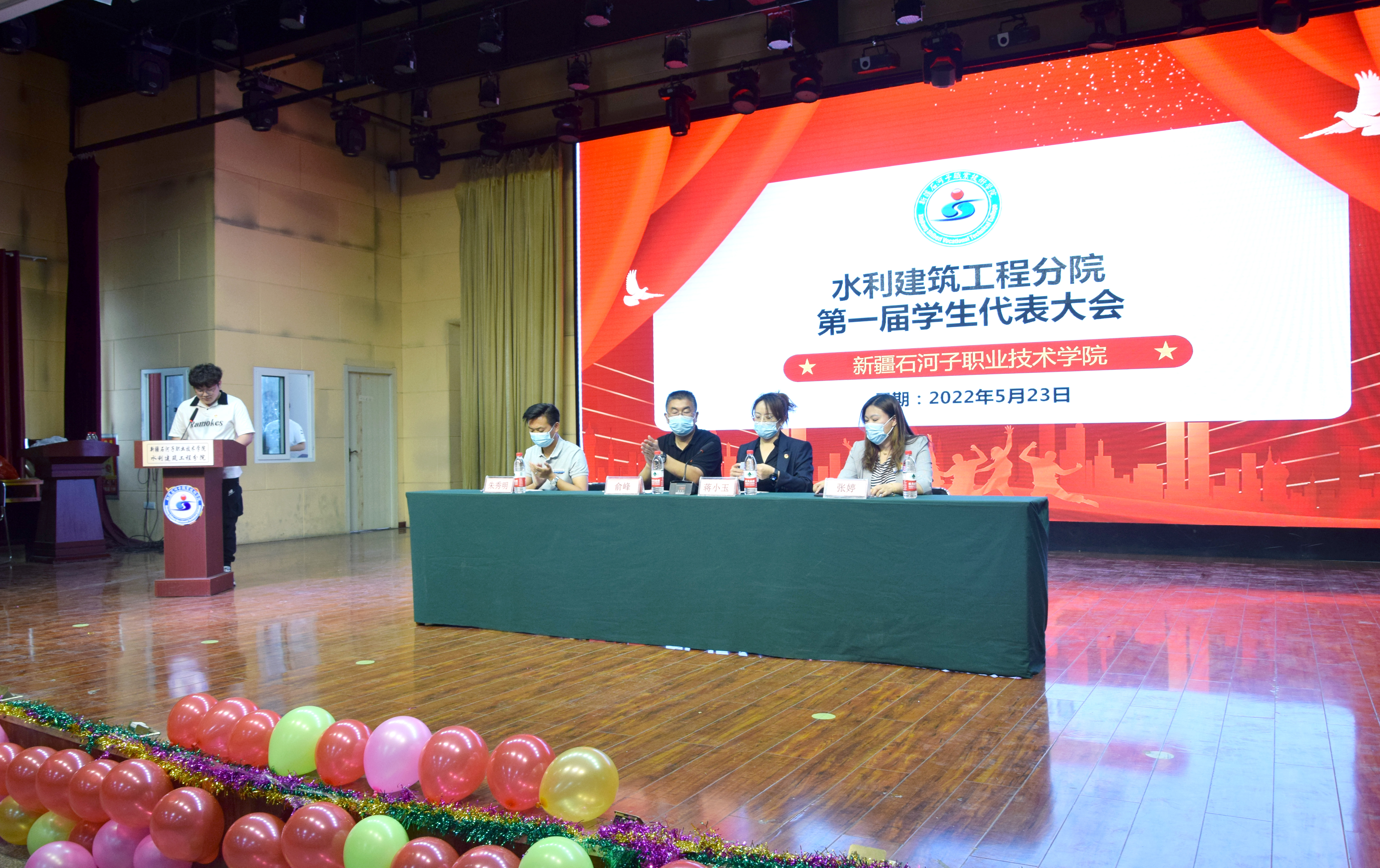 (朱秀明报道)2022年5月23日,Beat365中文官方网站水利建筑工程分院第一届学生代表大会在综合楼四楼阶教召开,学院团委书记蒋小玉、水建分院党总支书记俞峰、水建分院党总支委员副院长张婷、水建分院团总支书记朱秀明出席会议,水建分院100名学生代表参加了会议。