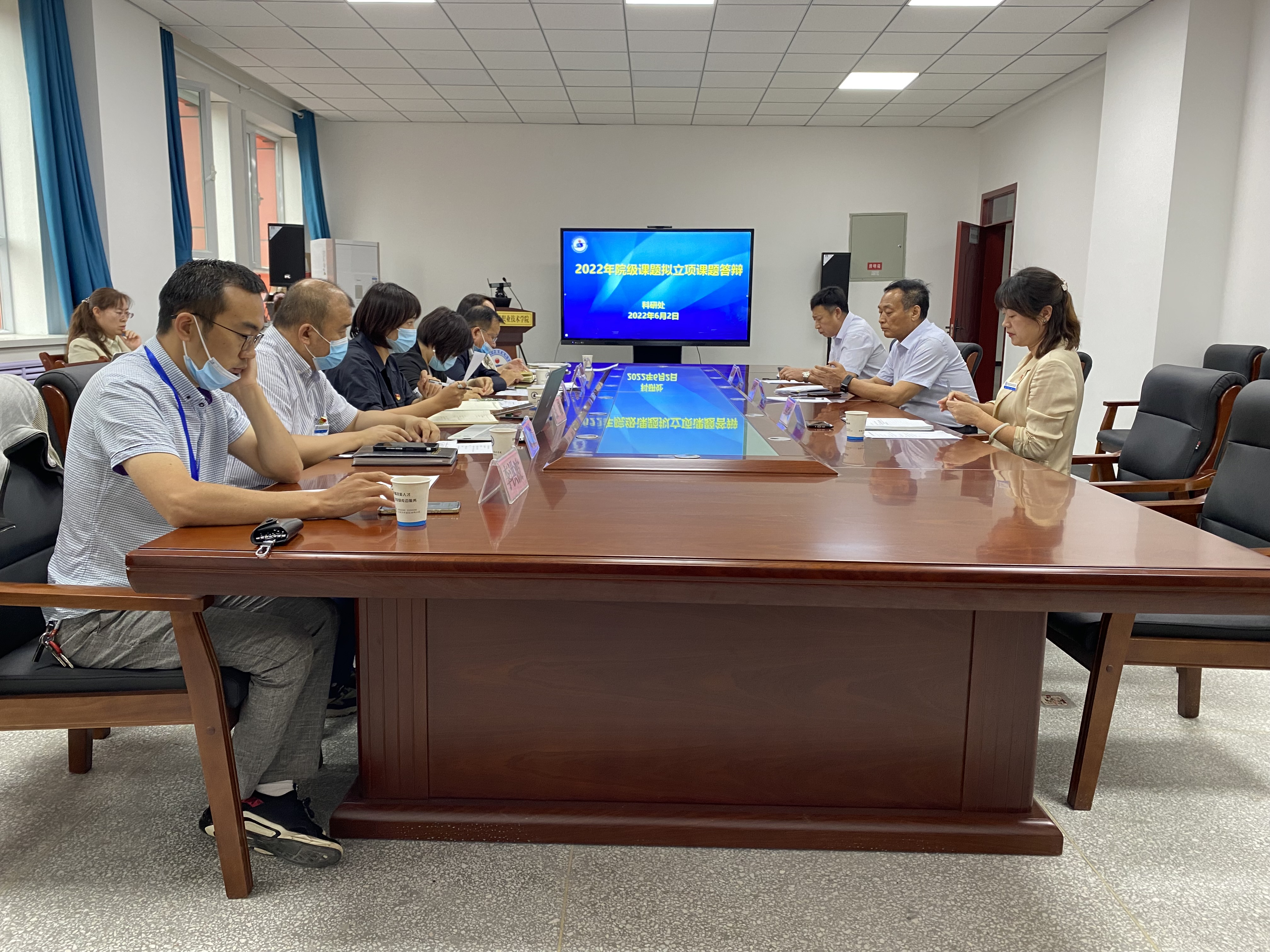 6月2日下午在新行政楼2楼会议室学院召开了2022年院级拟立项课题答辩会。答辩由科研处组织,学院党委书记史文革、学院院长林炯、学院副院长马彩梅作为指导专家出席会议,学术委员会专家、拟立项课题负责人参加了本次答辩。答辩由科研处处长胡英主持。