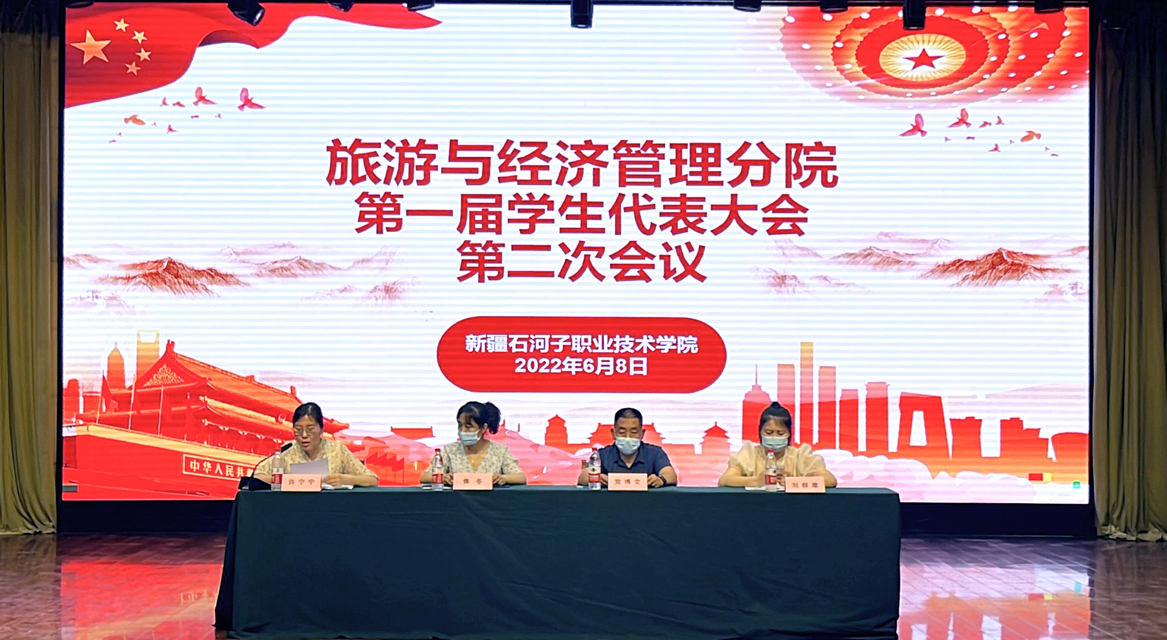 (杨瑷烛报道)2022年6月8日,Beat365中文官方网站旅游与经济管理分院第一届学生代表大会在综合楼四楼阶教召开,参加本次会议的有经贸分院党博文书记、傅冬老师、刘群麾老师、团总支书记许宁宁老师、所有辅导员老师及111名学生代表。