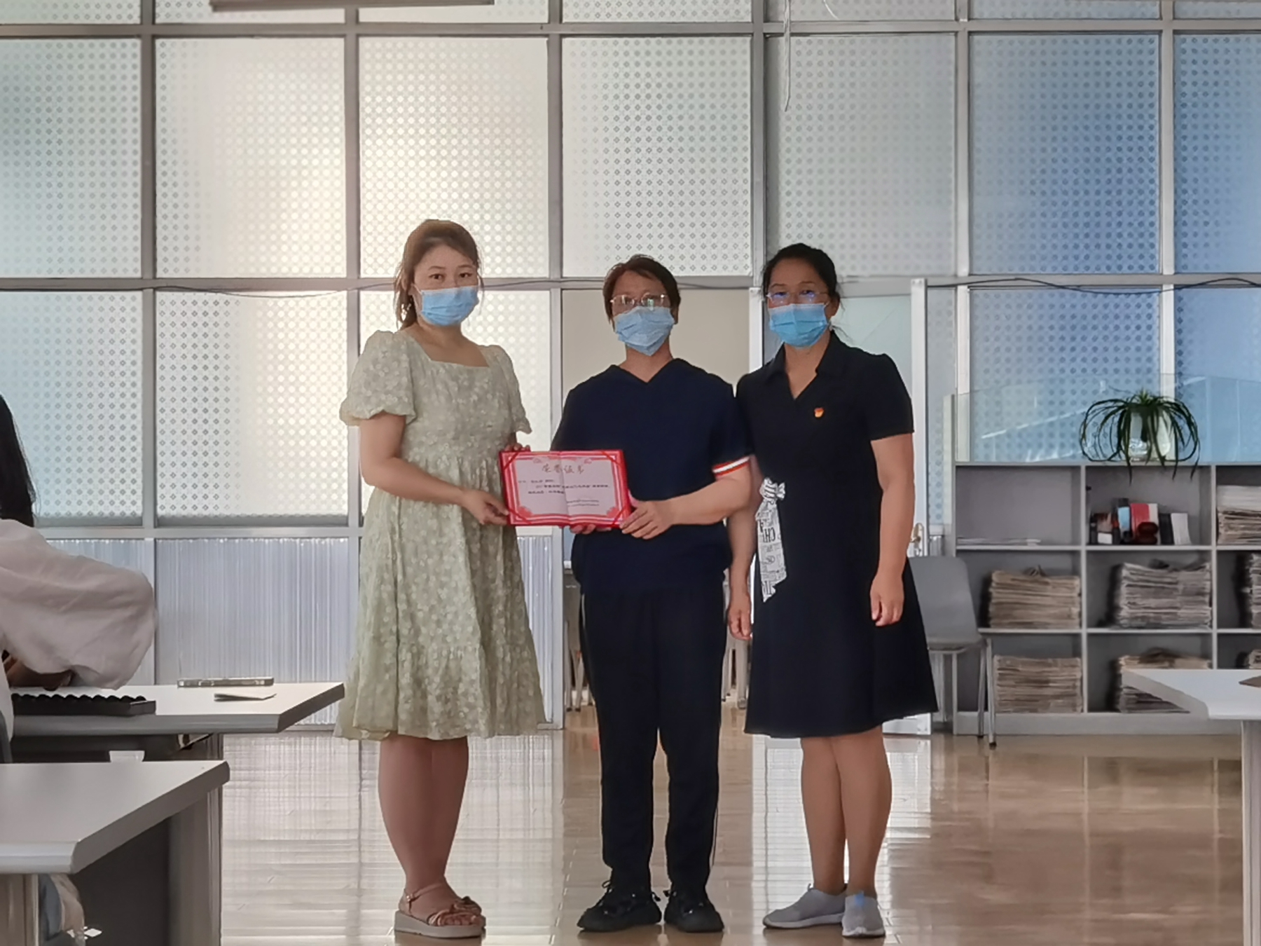 比赛现场,图书馆馆长陈建红和经贸分院刘群麾老师共同代表学院为陆水珍老师颁发了“学院优秀文化志愿者”荣誉证书,感谢她为学院传承中华优秀传统文化的默默付出和对学生的辛勤奉献。