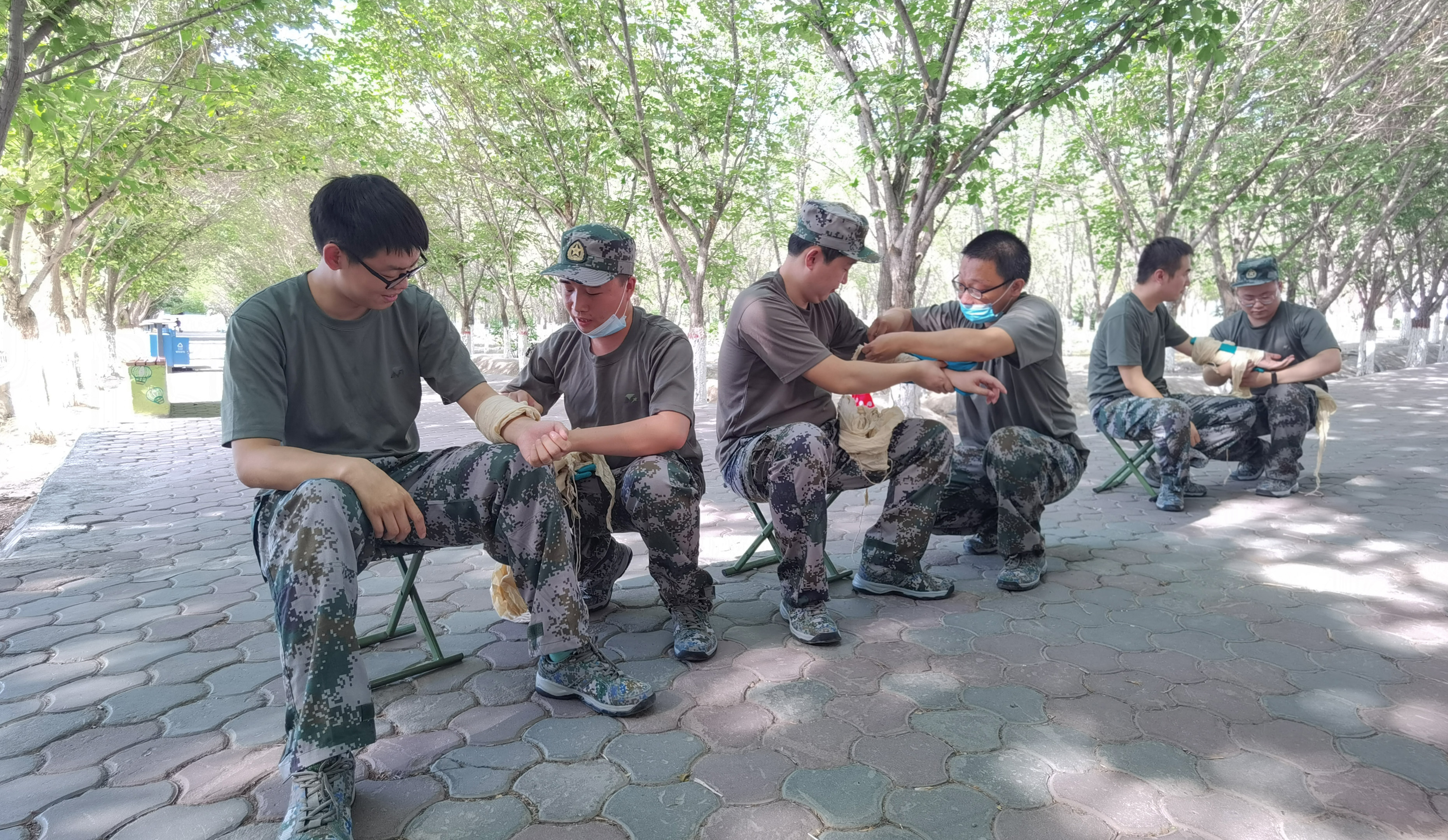 训练现场,参训人员着装整齐、精神抖擞,在教官的指挥下,认真学习军事理论知识,做好队列、体能、卫生与救护等军事项目训练,各排战士亲身体验头部包扎、眼部包扎、小臂包扎等各个环节,并在每个包扎点位上都有卫生员,及时纠正错误操作,避免发生意外情况。各科目坚持科学组训,严格规范训练条件、流程、标准和要求,周密组织训练保障、物资保障、医疗救护等勤务。确保训练过程安全进行。