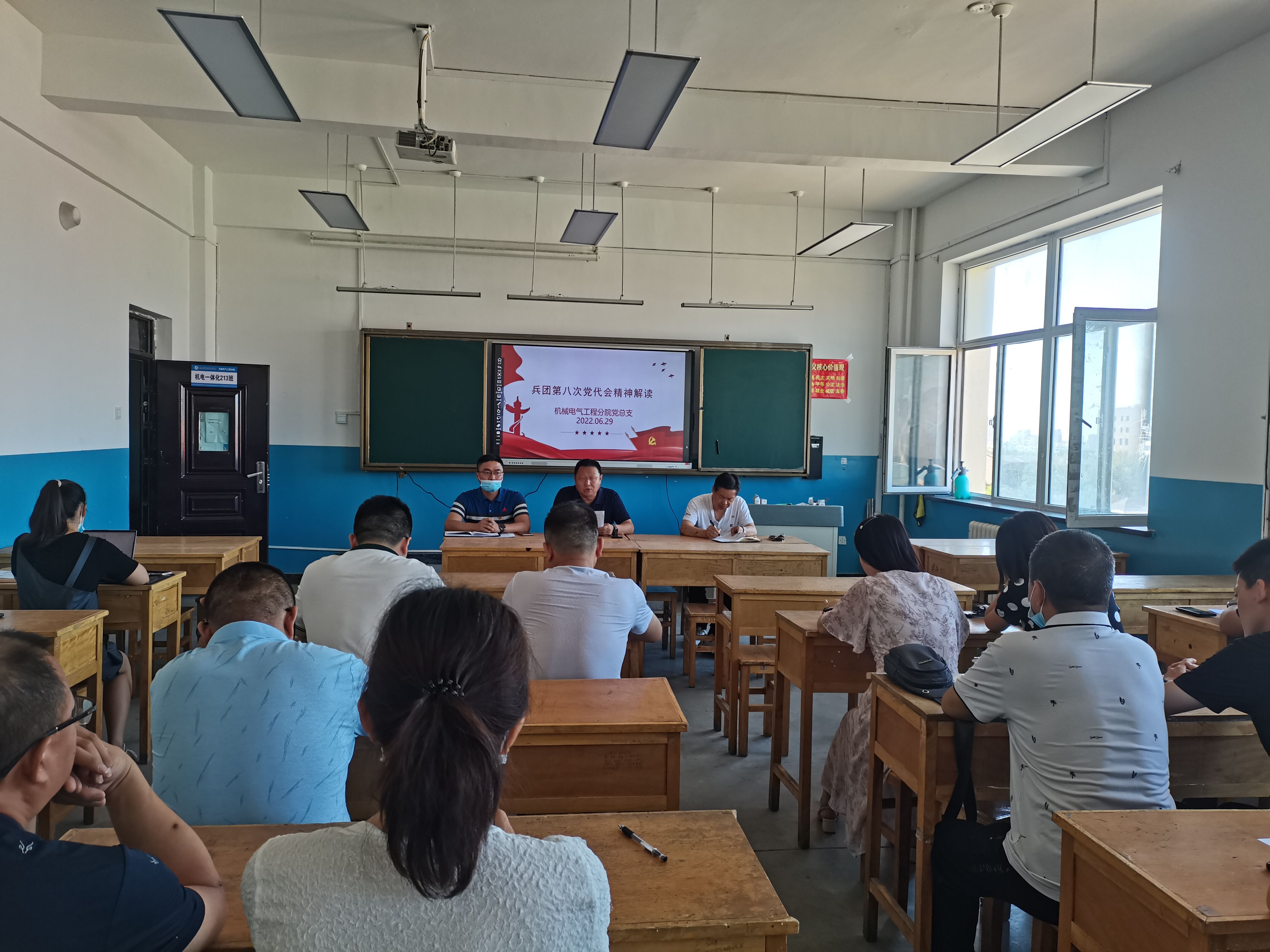 首先由机电分院书记辛延波对“兵团第八次党代会精神”进行解读,辛延波书记指出要完整准确贯彻新时代党的治疆方略,准确把握兵团发展的时代要求,高质量推进现代化建设,为实现新疆社会稳定和长治久安总目标作出新的更大贡献。同时引导大家开展深入全面的讨论,要切实转变学风,提高学习质量,以更加奋发有为的精神状态,把会议精神落实到具体工作中。