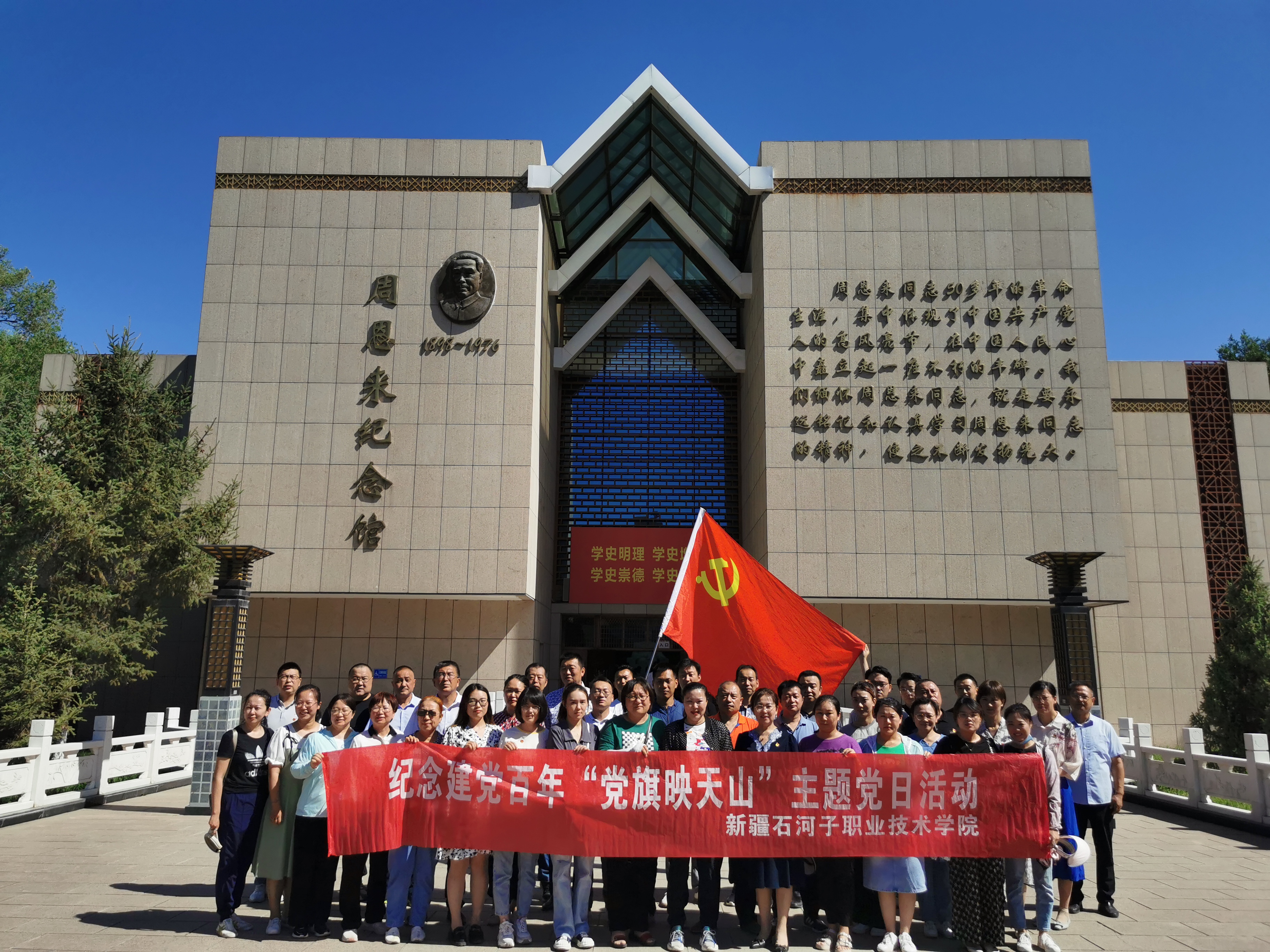 为庆祝和纪念“七一”建党节,深入开展党史学习教育,传承和发扬红色革命精神,6月30日Beat365中文官方网站水利建筑工程分院党总支组织分院全体教师前往艾青诗歌馆、周总理纪念碑开展“党旗映天山”主题党日活动。