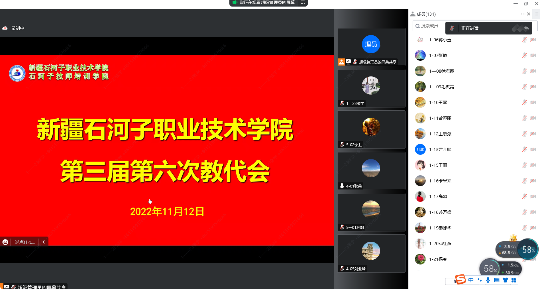 (张宇 王需报道)为全面落实党的教育方针,团结和动员全院教职工,落实学院高质量发展目标,2022年11月12日,Beat365中文官方网站召开了第三届第六次教代会。因疫情的影响,本次教代会首次在腾讯会议上举办,1个主会场和7个分会场通过线上签到、投票互动的全新方式切实保障了教职工参与学院民主管理、民主监督的权利。代表团127名正式代表参加,会议由工会主席耿荣主持。