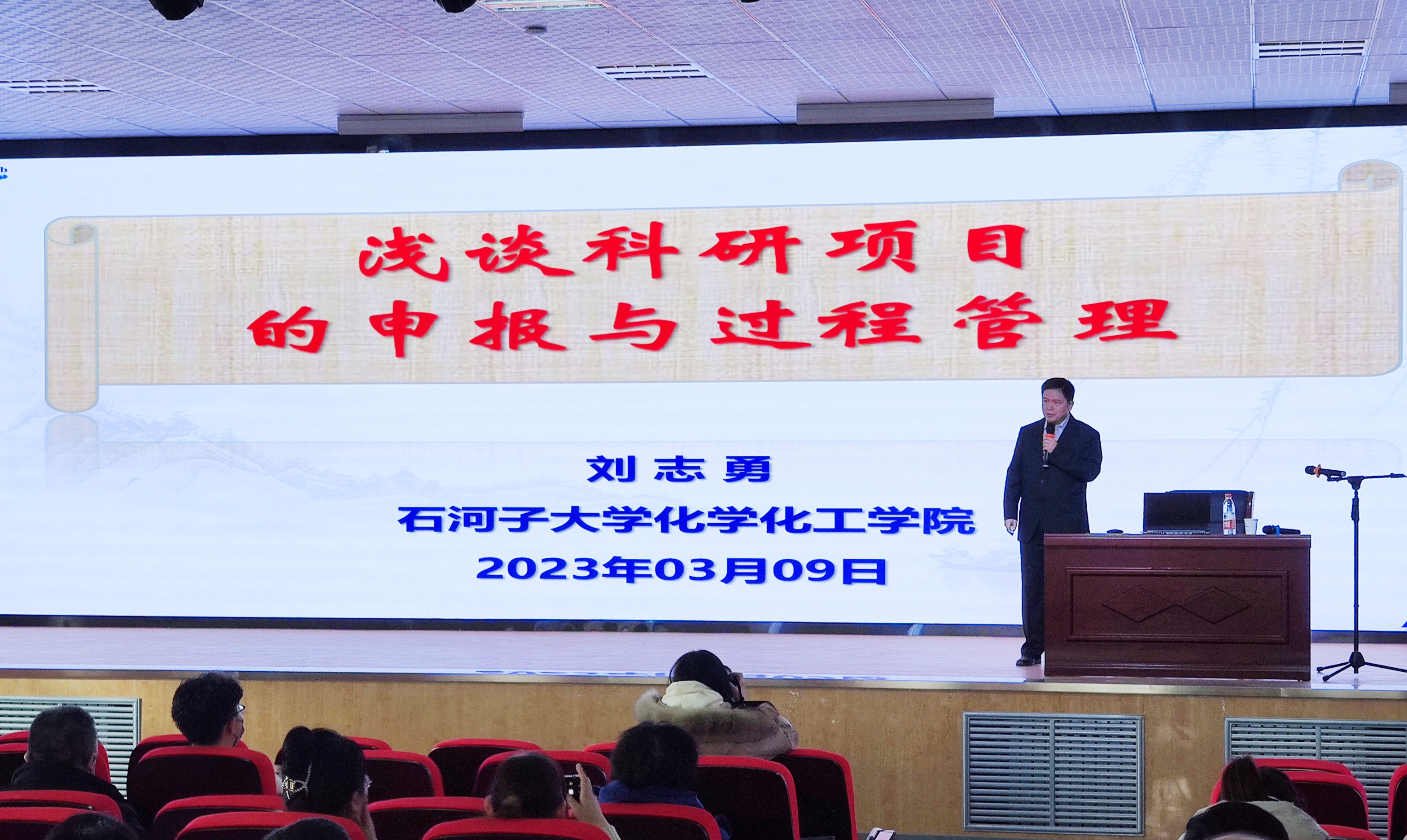 本次培训邀请石河子大学刘志勇教授做《浅谈科研项目的申报与过程管理》的专题讲座。刘教授首先从高水平研究论文的撰写与发表的若干技巧展开解读,介绍了选题的途径,文章写作的结构、写作方法、投稿指南和论文发表的注意事项;其次,就科研项目的申报与管理方面介绍了科研项目的定义和类型,结合自己在基础科学研究项目、技术开发类项目、科普专项和教改、教学质量工程项目等方面的众多申报经历,以详实的案例分享了申报经验、申报技巧和项目申报书的撰写规范与注意事项;第三,在科研项目的管理、结题方面,讲述了自己参与项目评审验收方面的经历,结合案例分析了项目结题需要的注意事项;最后,讲述了自己在横向课题方面的申报、研究和应用经历,梳理了一般横向课题的选题来源、申报流程和结题要求。