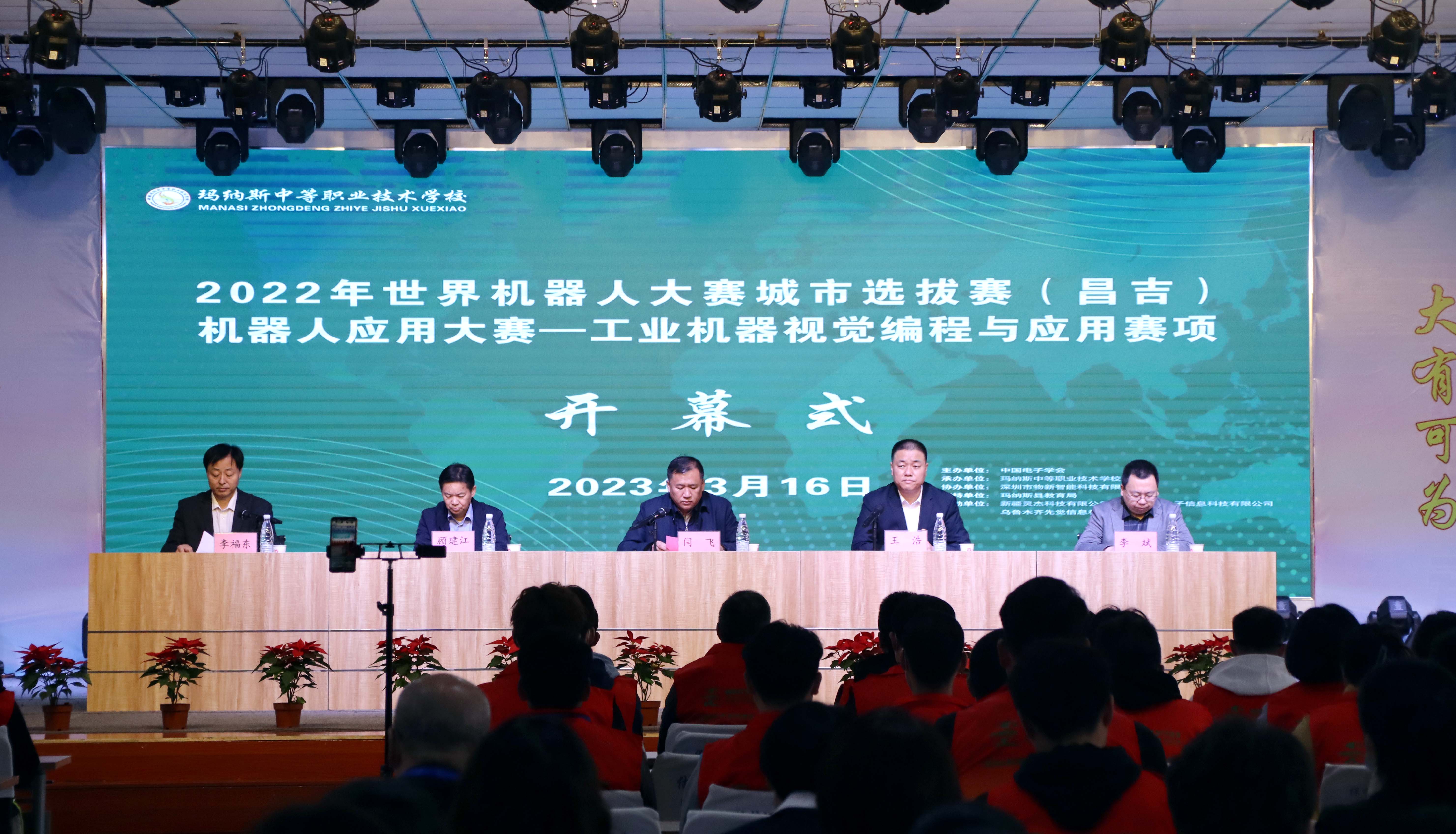 (杨捷辉报道)为推进兵地职业院校共促教育质量、共担育人使命,2023年3月16日上午,由中国电子学会主办的机器人应用大赛——工业机器视觉编程与应用赛项在玛纳斯中等职业技术学校隆重开幕。