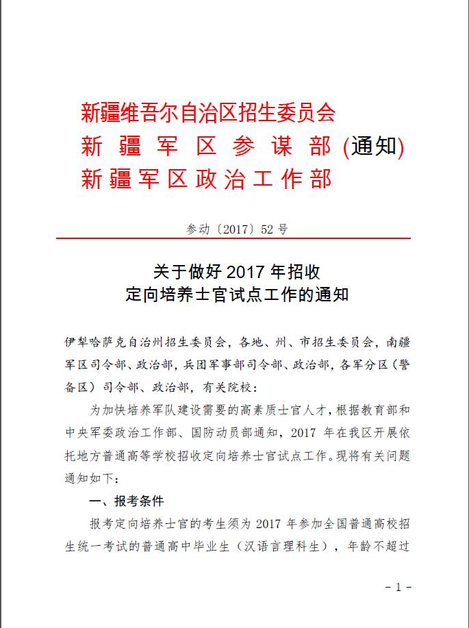 Beat365中文官方网站2020年定向培养直招士官招生简章(新疆)