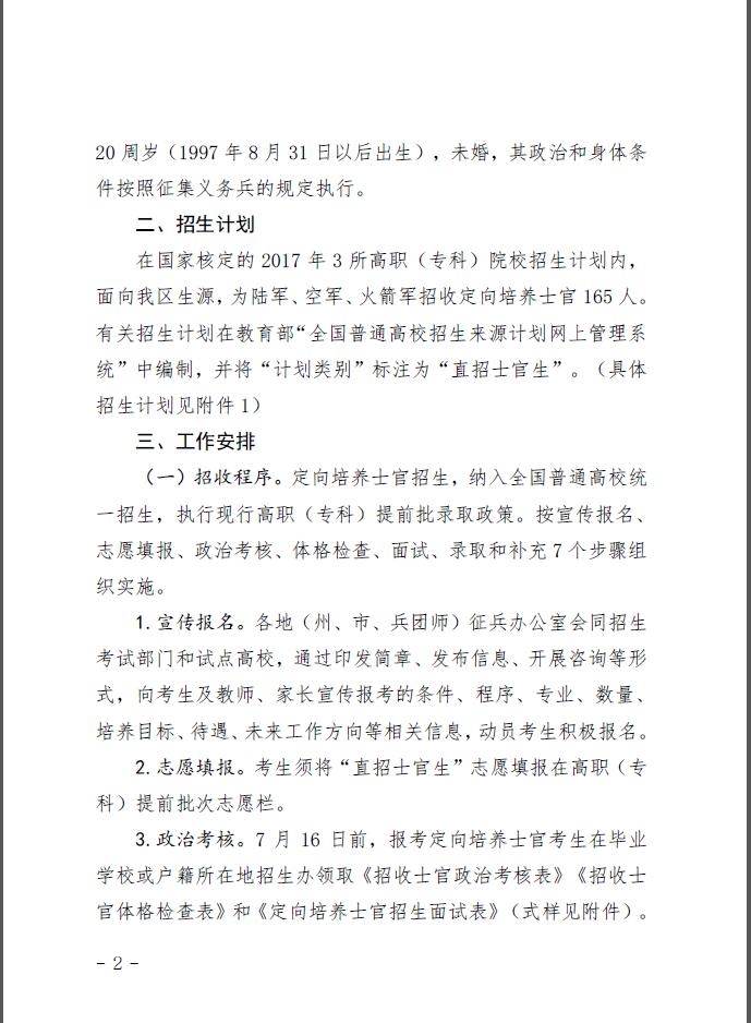 Beat365中文官方网站2017年定向培养直招士官招生简章