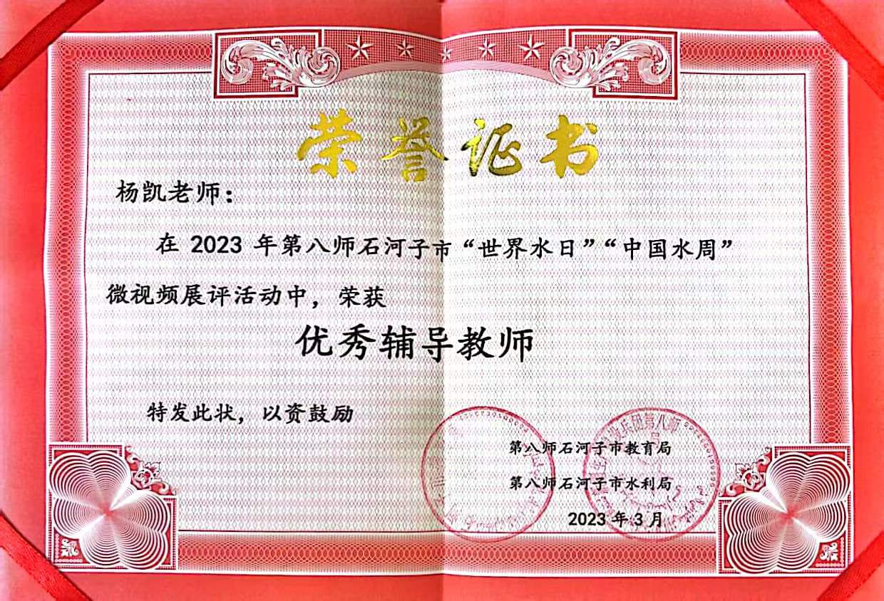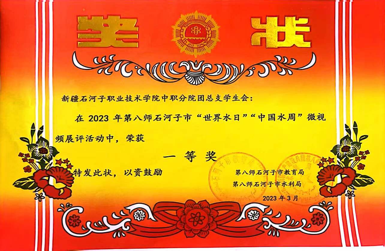 (中职分院学办供稿)在2023年3月22日师市第三十一届“世界水日”、3月22—28日第三十六届“中国水周”“水资源”展评活动中,Beat365中文官方网站中职分院团总支学生于佳丽同学获得微视频展一等奖,指导老师杨凯获得优秀辅导教师称号。