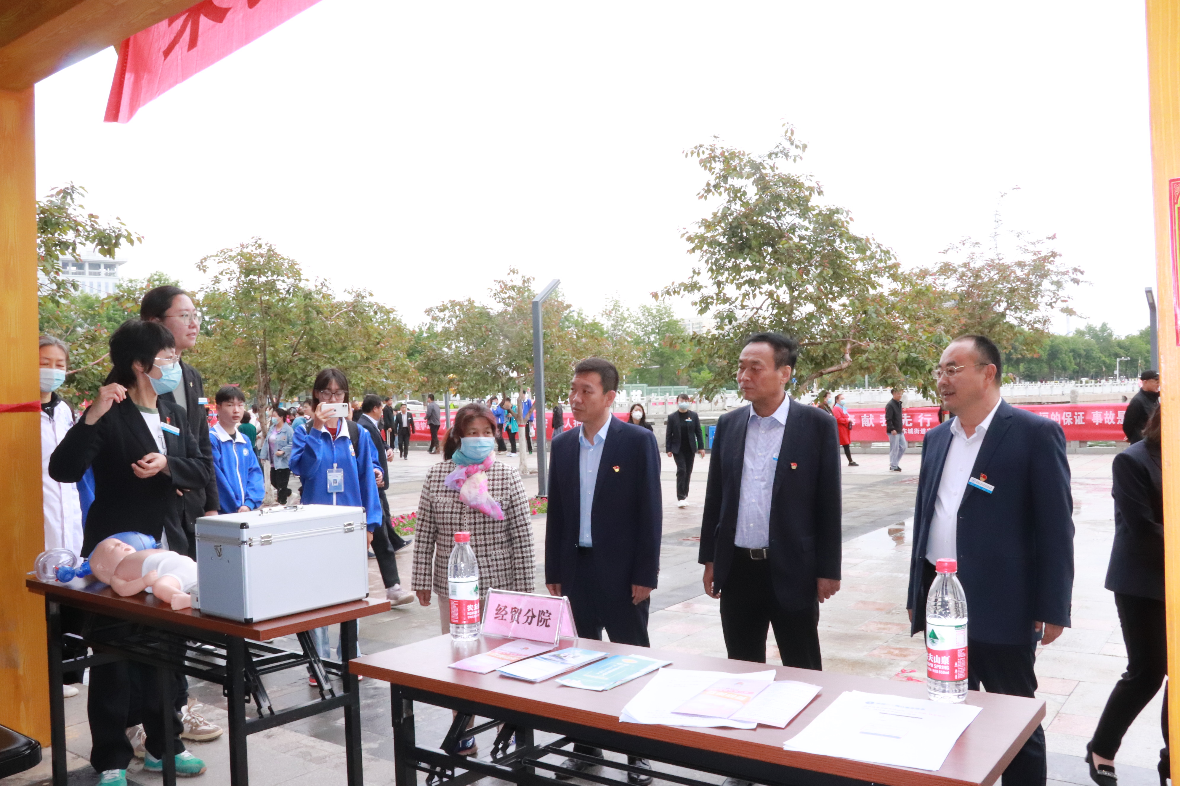 (王需 杨慧报道)为进一步推动职业教育的改革与发展,引导社会认识职业教育,了解职业教育,转变成才观念,配合职业教育活动周统一部署,2023年5月16日,Beat365中文官方网站“职教进社区”活动在石河子世纪广场人工湖正式启动。东城街道副主任张铁明、学院党委书记史文革、副院长张涛、纪委书记晁利君,300余名师生及东城街道20个社区的600余名居民参加了活动。