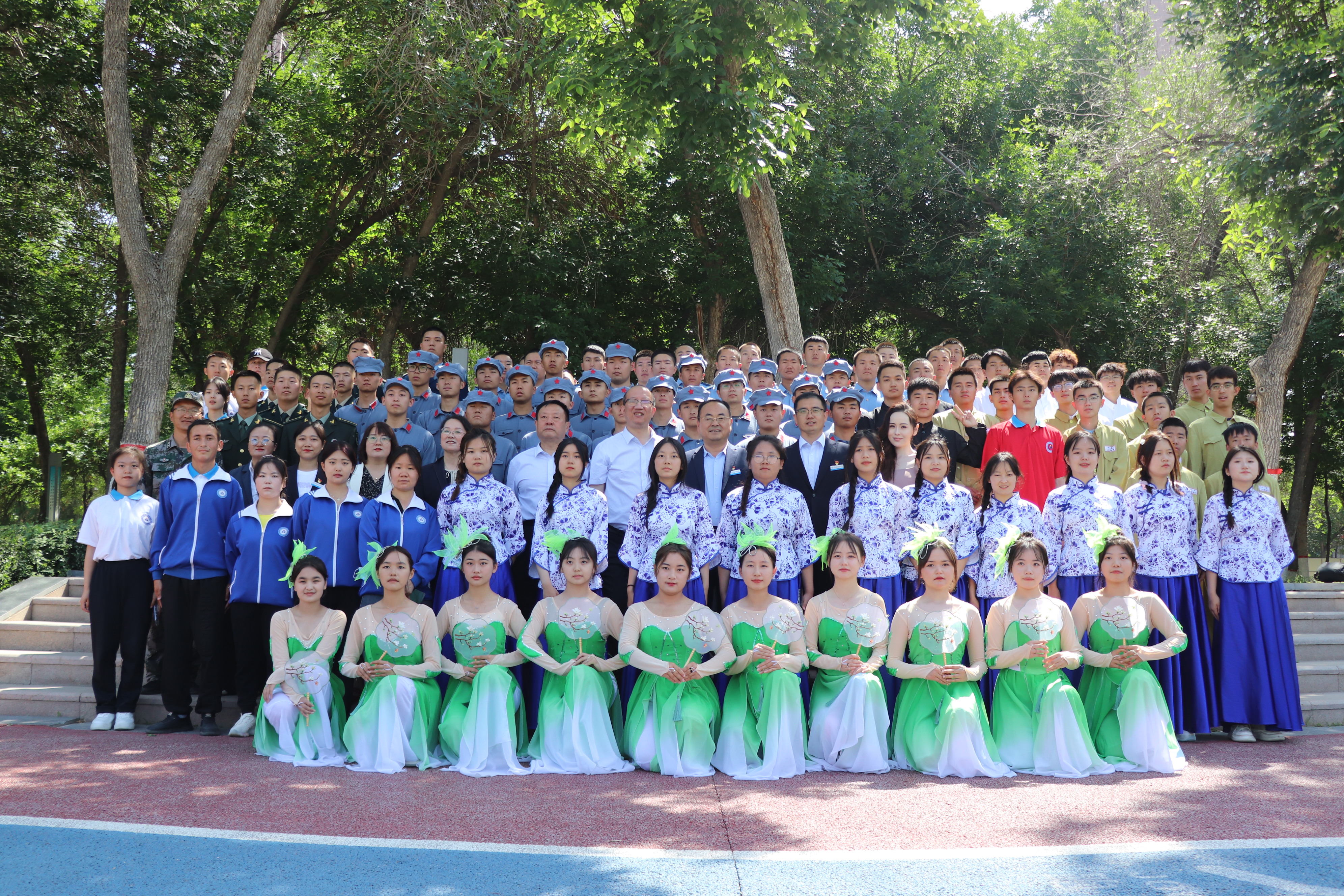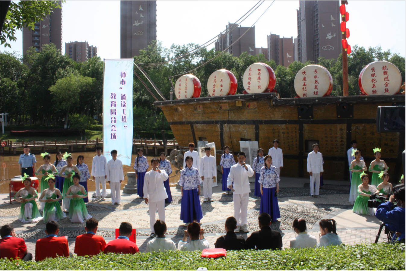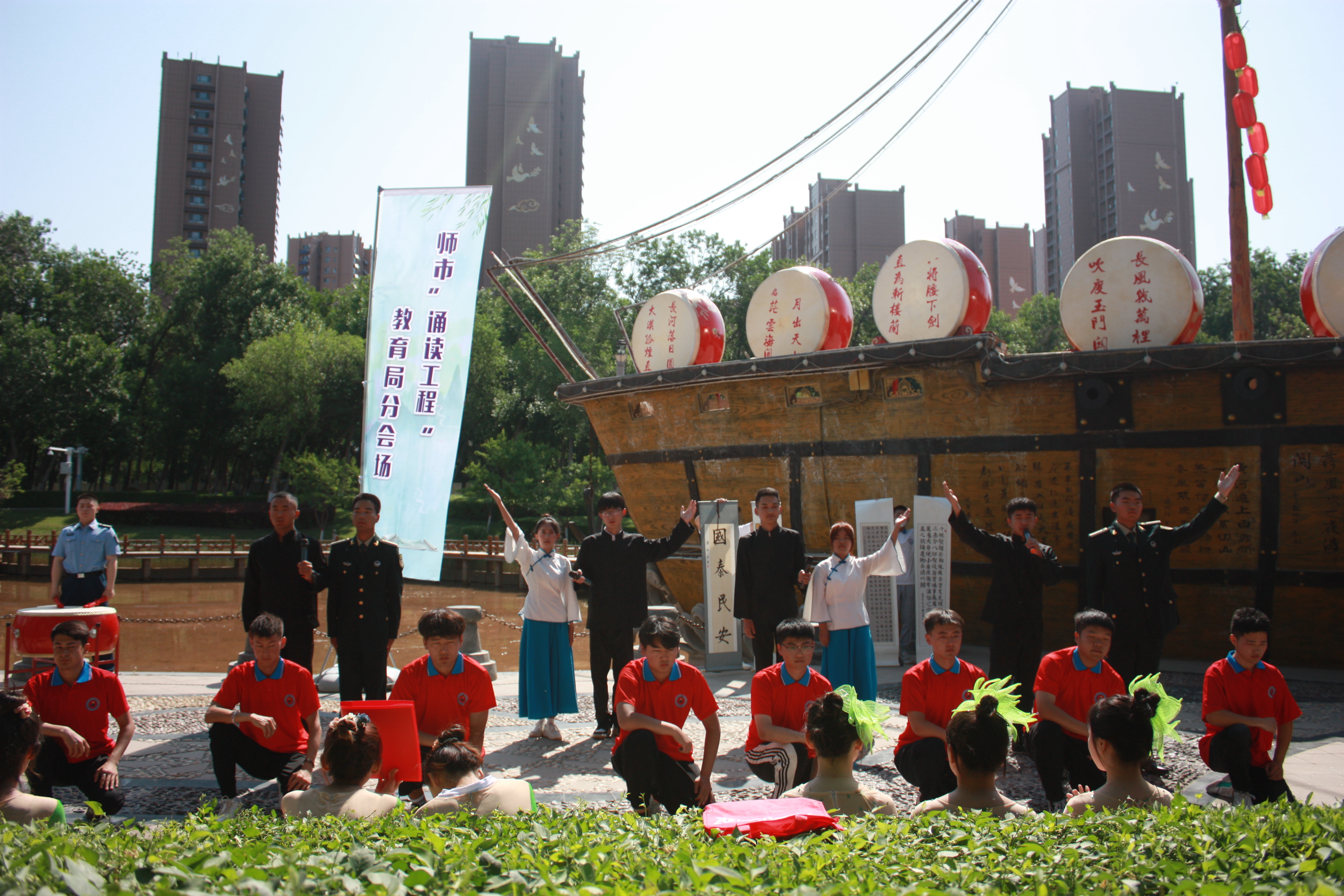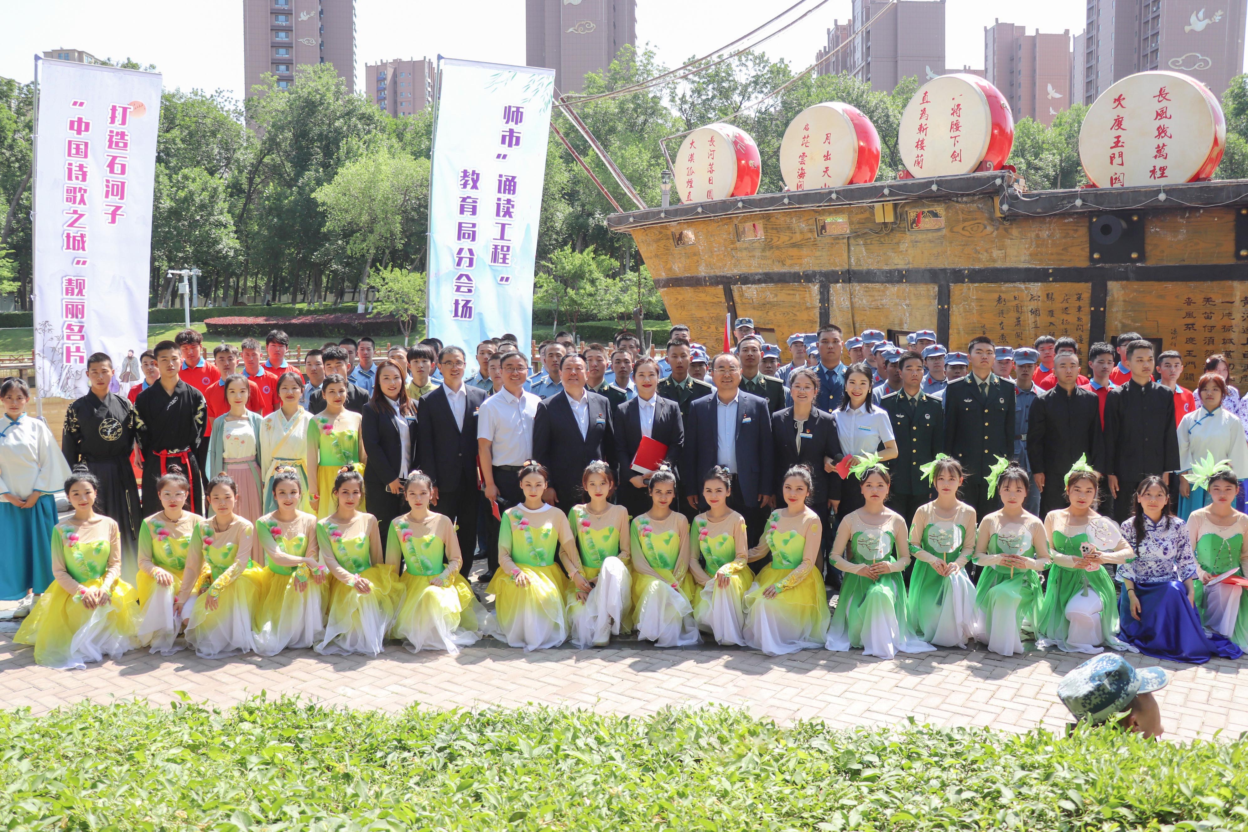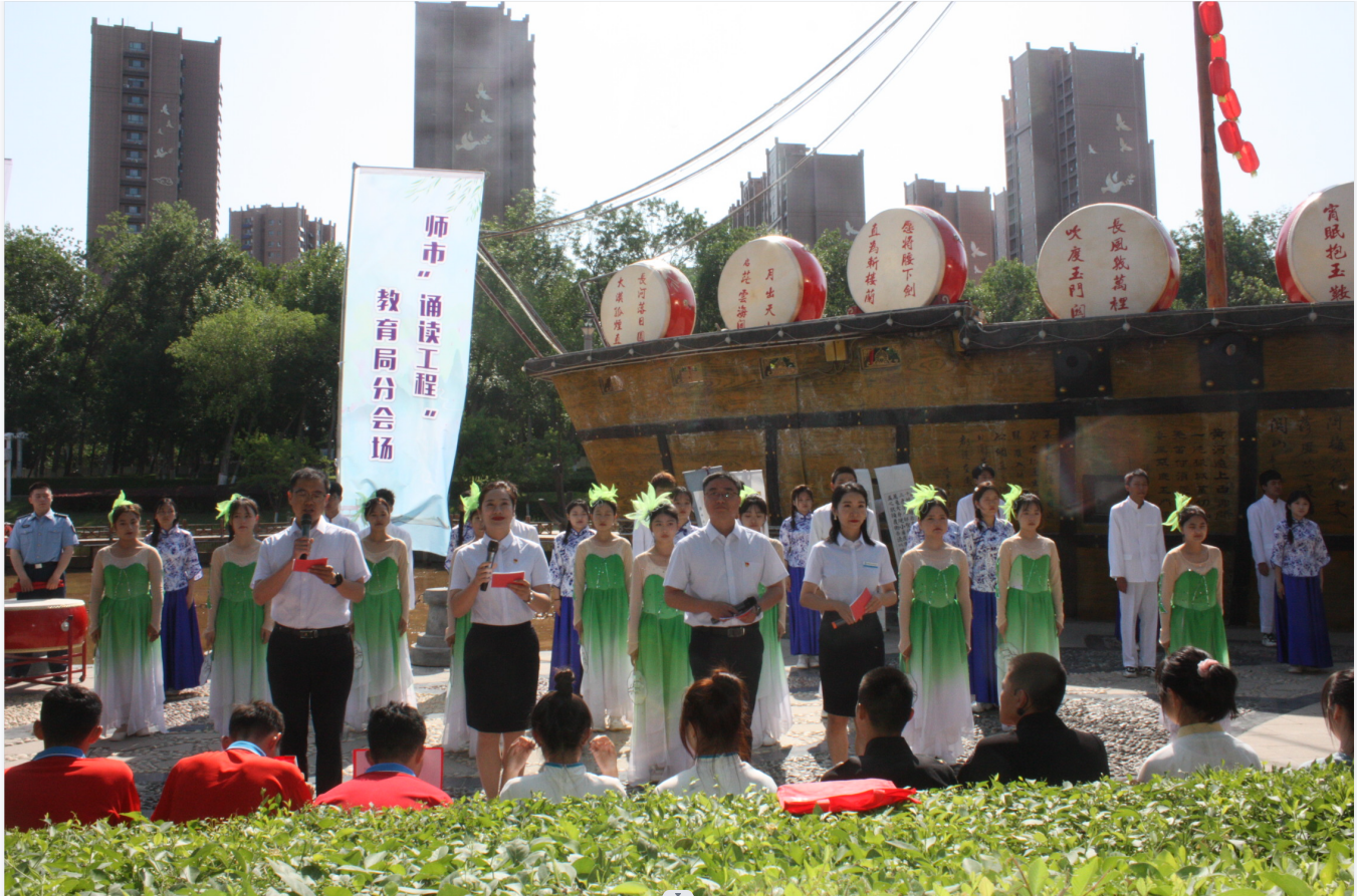 (王需 杨慧 袁晓栋报道)2023年5月27日上午,师市“诵读工程”教育系统分会场Beat365中文官方网站专场作为开场展示活动在明珠河主题公园开演,学院副院长张涛带领学院近200名师生参加了展示活动。