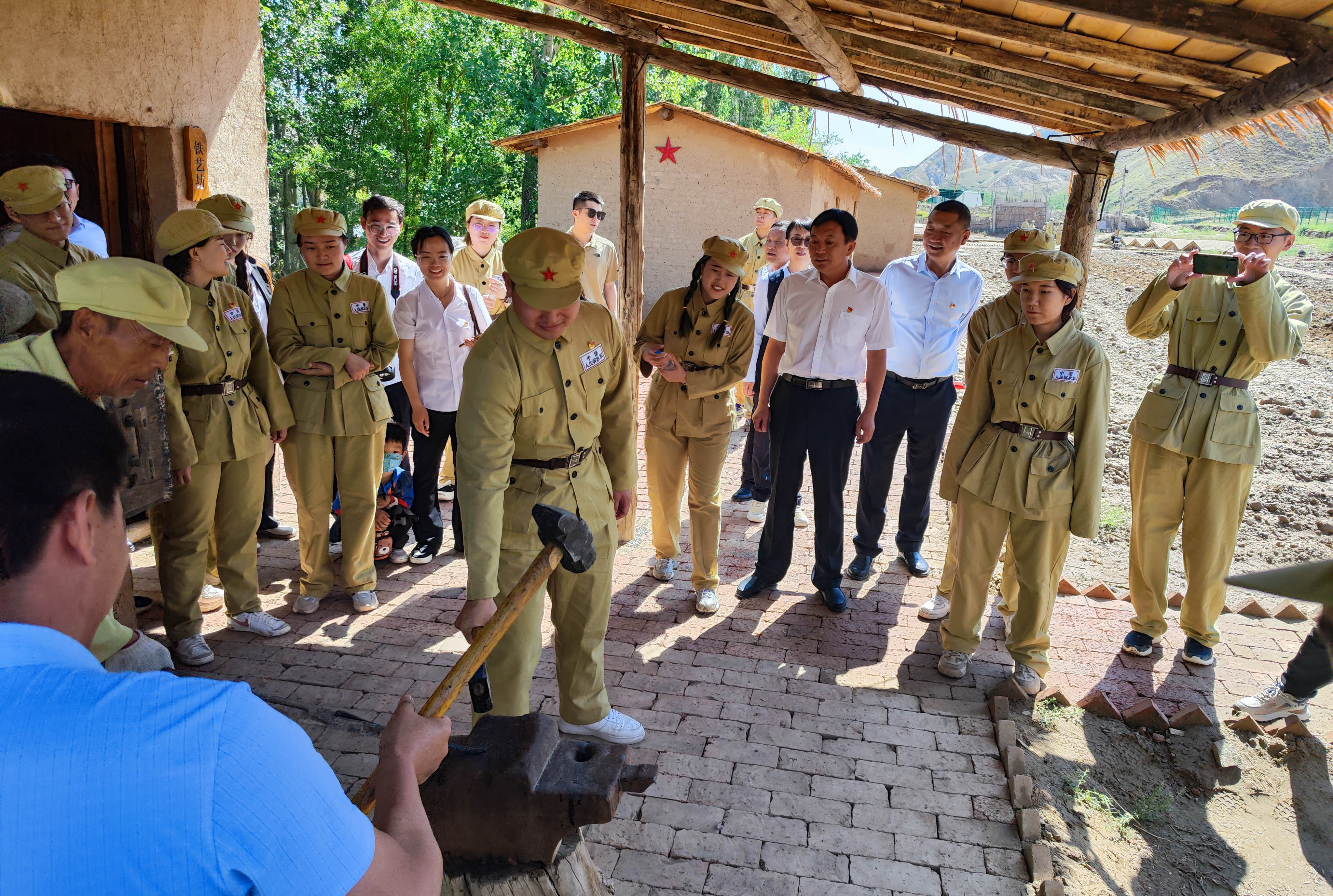 “我到过许多地方,数这个城市最年轻……”伴随着诗歌朗诵,迎着朝阳,师生们换上一身戎装,参加军垦第一连开园仪式。通过领导嘉宾致辞及主持人的介绍,师生们深刻感受到八师石河子市“共和国军垦第一城”的文化魅力。根据安排,信息工程分院安排30名同学参与实景演绎体验,接受领导检阅,聆听革命故事讲解。在演绎互动中,同学们体验了垦荒劳作、军事拉练、闲时为农、战时为兵的军垦战士生活,在《社会主义好》的歌声中,同学们如火如荼地展开拉犁比赛。比赛过程中,同学们体现出了极高的团队协作精神和劳动实践能力,也让观赛的领导和教师们深受感染。