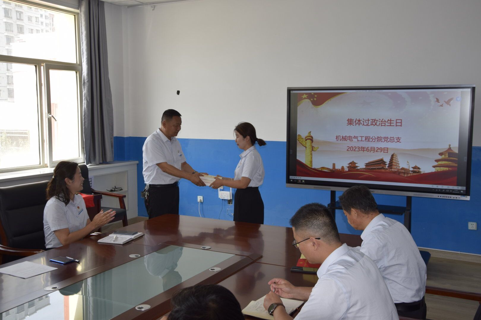 (苏晓瑞报道)为庆祝中国共产党成立102周年,2023年6月29日,机械电气工程分院党总支开展以“党旗映天山”为主题的党日活动。学院副院长马彩梅以普通党员身份和全体党员参加活动,活动由,分院党总支书记辛延波主持。