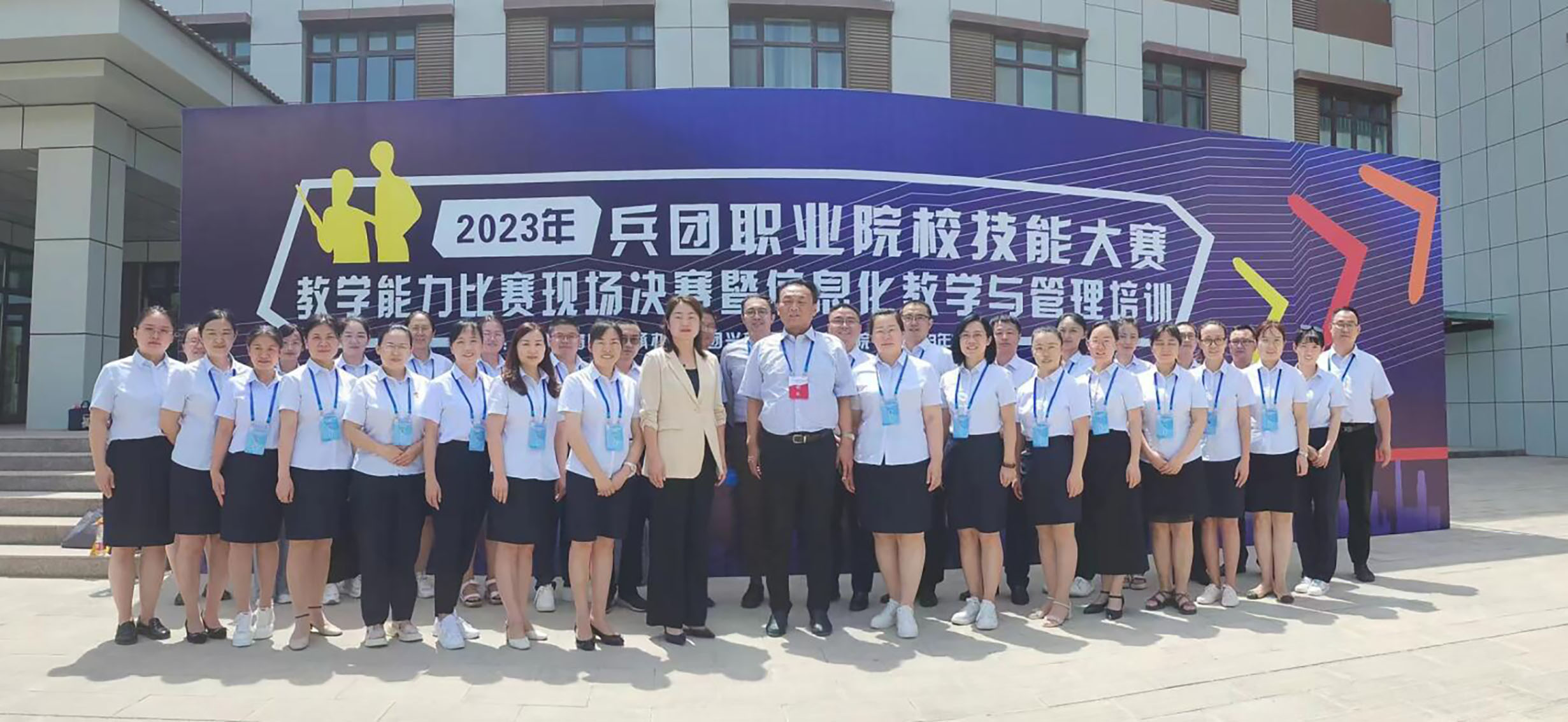 2023年兵团职业院校技能大赛教学能力比赛由兵团教育局主办,兵团兴新职业技术学院承办,设置高职组和中职组,各组分设公共基础课程组、专业(技能)课程一组、专业(技能)课程二组。有来自14个兵团职业院校的50支队伍参加决赛,其中有18个东西协作团队。