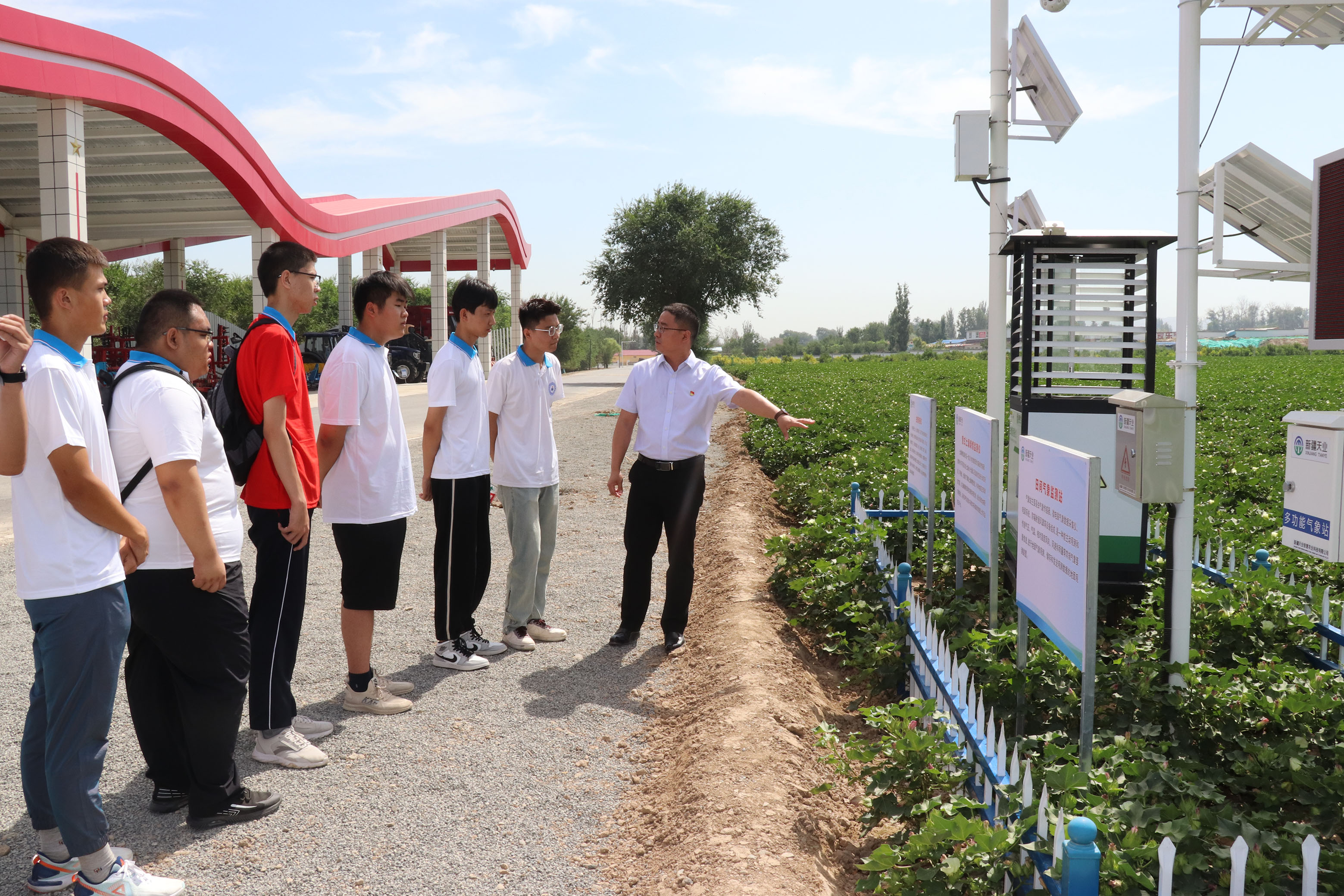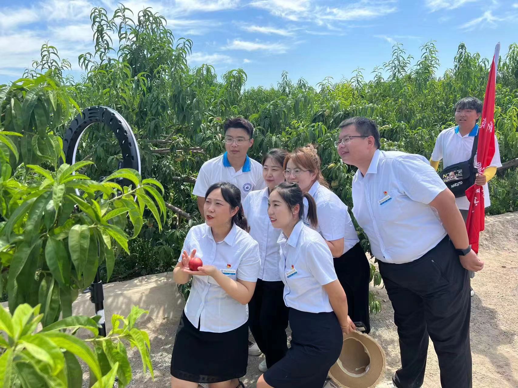 在143团倪家桃园,实践团成员们聆听了园主倪泽涵深情讲述习近平总书记去年到桃园视察的情景。市场营销、电商专业的学生在老师的指导下,做起了线上直播并制定线下营销方案。中国棉花看新疆,新疆棉花看兵团,兵团棉花看八师。在143团1连棉田,专业教师对棉苗的生长及护理、现代滴灌技术、智慧农业数字化综合服务系统进行了专业讲解,让学生们切身体会了几代军垦人如何经过不懈努力,将一朵朵小棉花,做成了优势农产品的艰辛历程。