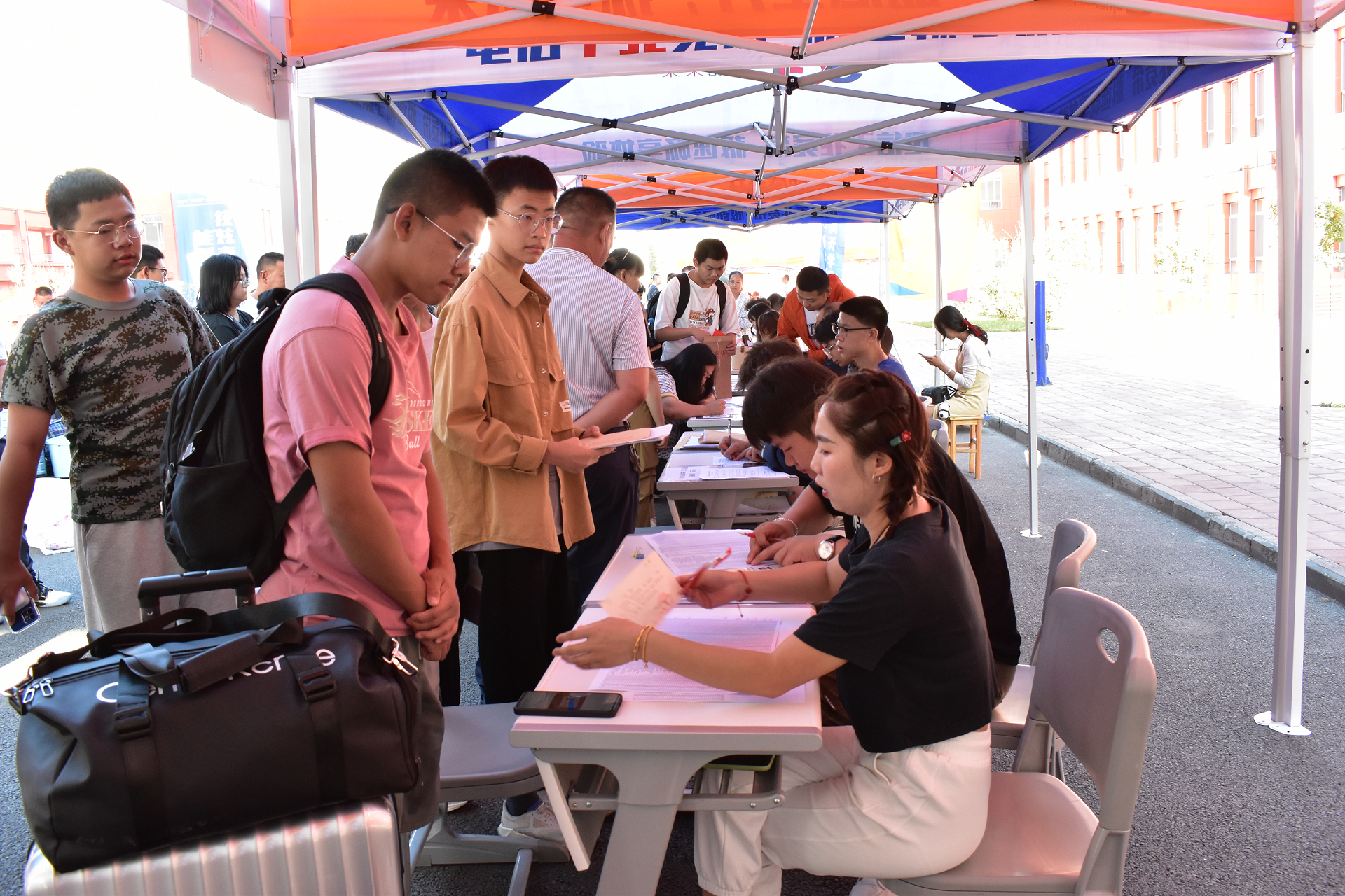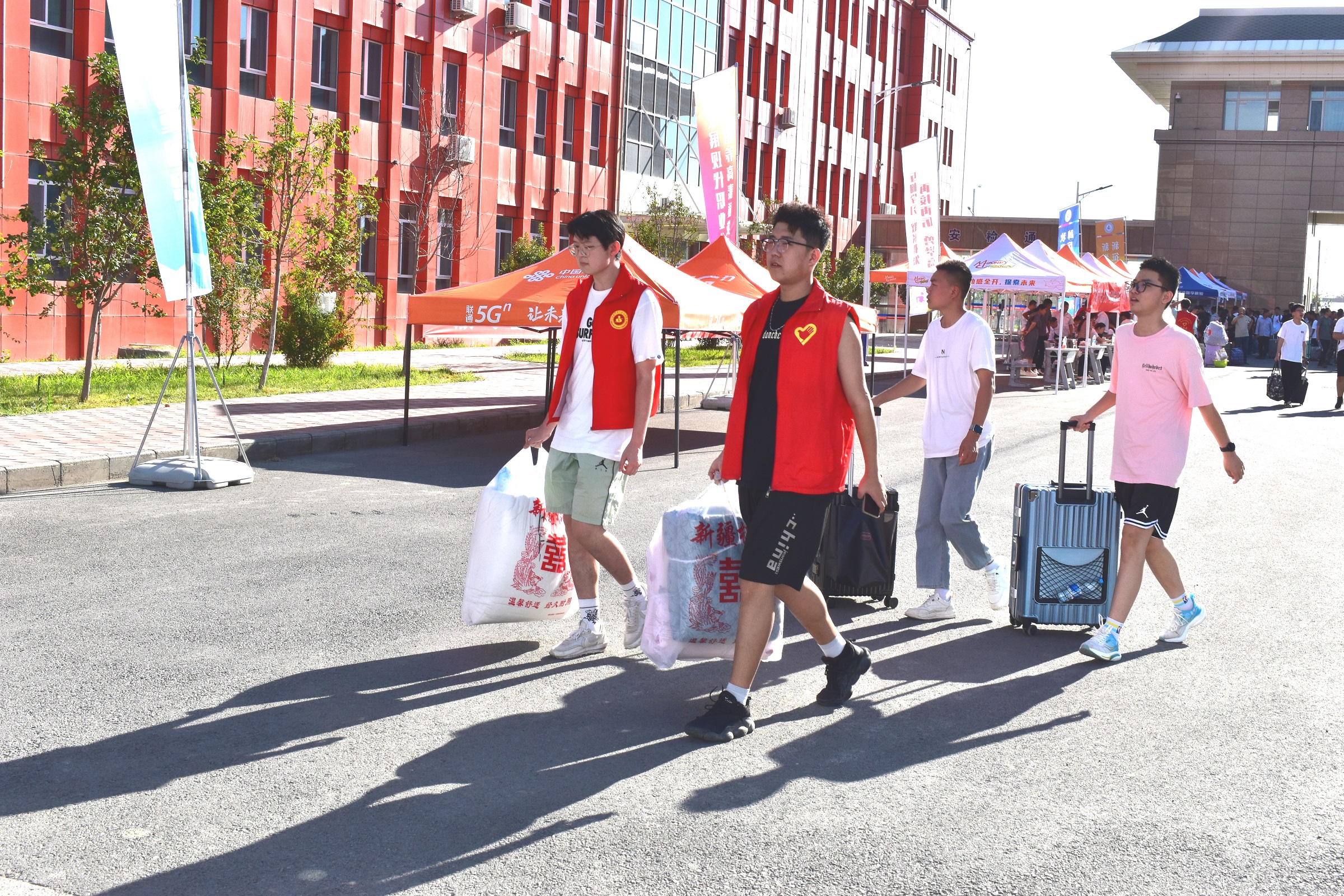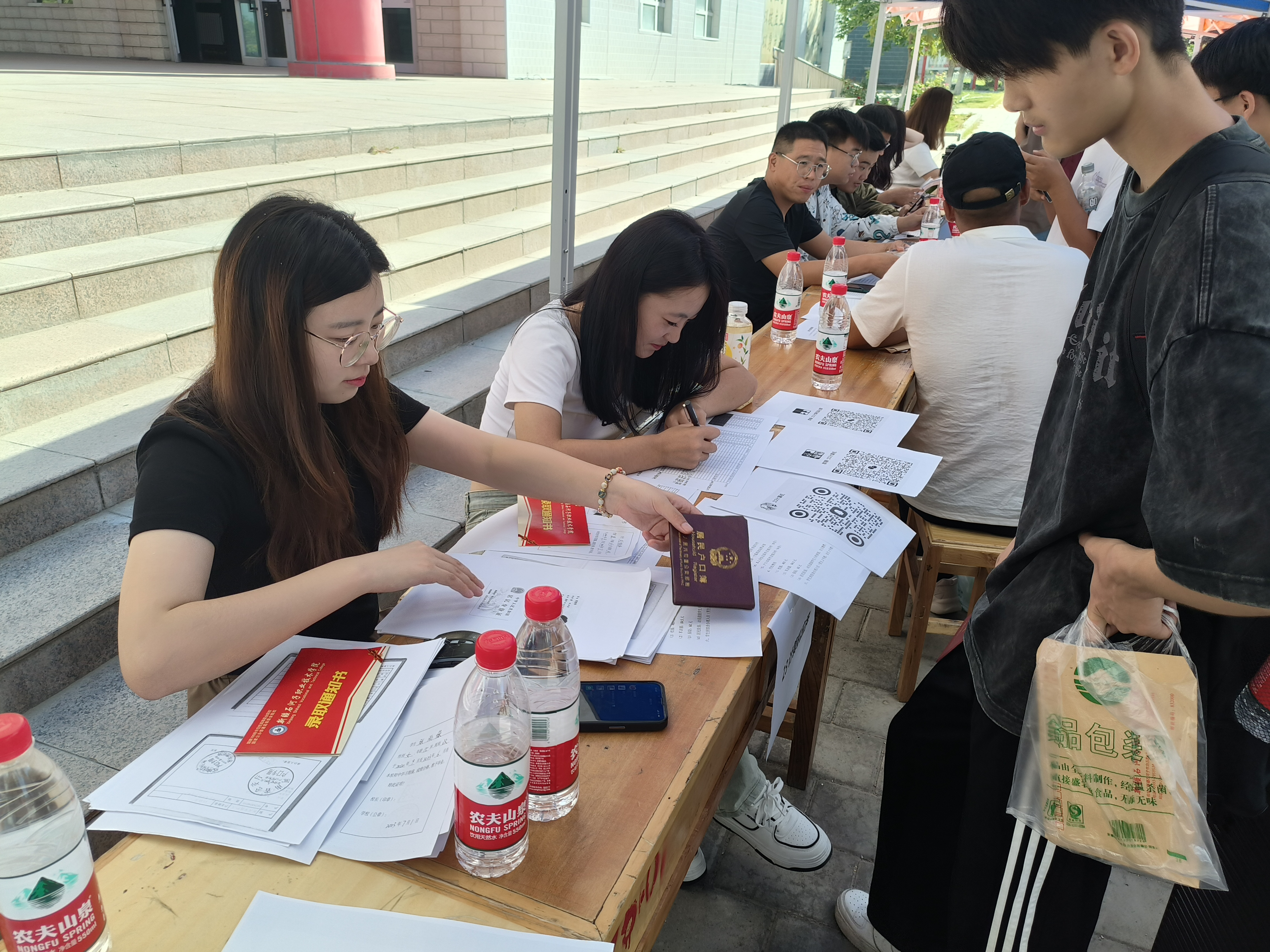 为了优化报到服务,学院在火车站、客运站均设立新生接待处,按不同时段需求安排专车为新生提供接送服务,校内设置了平板车和行李搬运车,从校门口迎新点直达宿舍楼,为新生打通入学报到“最后一公里”。新生们凭学生证(电子)和录取通知书进入校园,按专业分流排队报到。在各分院老师的协调下,现场秩序井然,一张张崭新的面孔为校园注入了新鲜活力,今后石职院的故事将由他们参与谱写。
