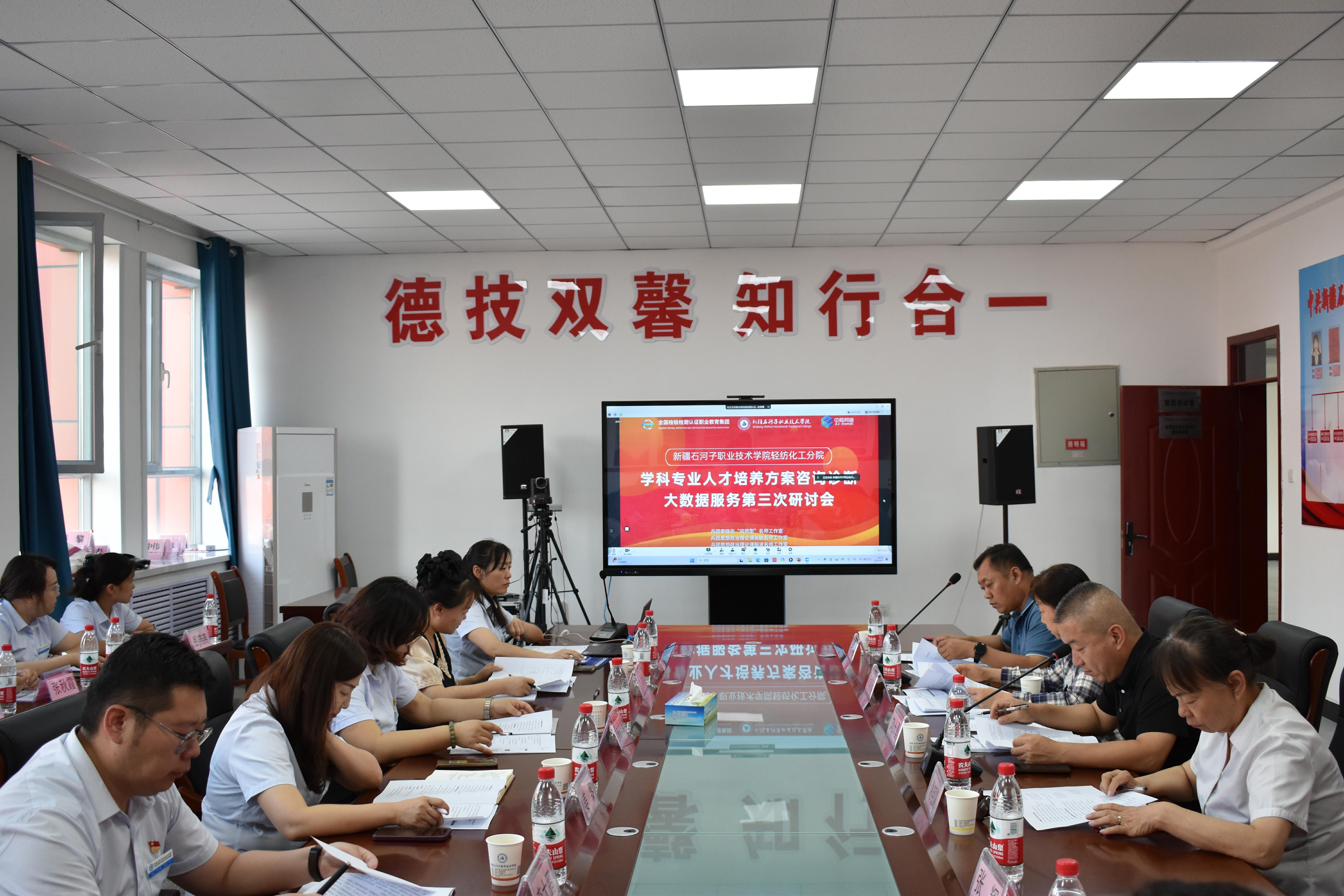 (徐萌萌 报道)2023年9月7日下午,全国检验检测认证职业教育集团、兵团李晓华“双师型”名师工作室、兵团思想政治理论课张敏名师工作室、兵团思想政治理论课殷波名师工作室主办,轻纺化工分院协办召开“学科专业人才培养咨询诊断大数据服务”(第三次会议)线上研讨会。全国检验检测认证职业教育集团常务副秘书长、中检邦迪副总经理周正火等部门相关负责人,轻纺化工分院领导、学院相关部门负责人及食品专业教师参加会议。