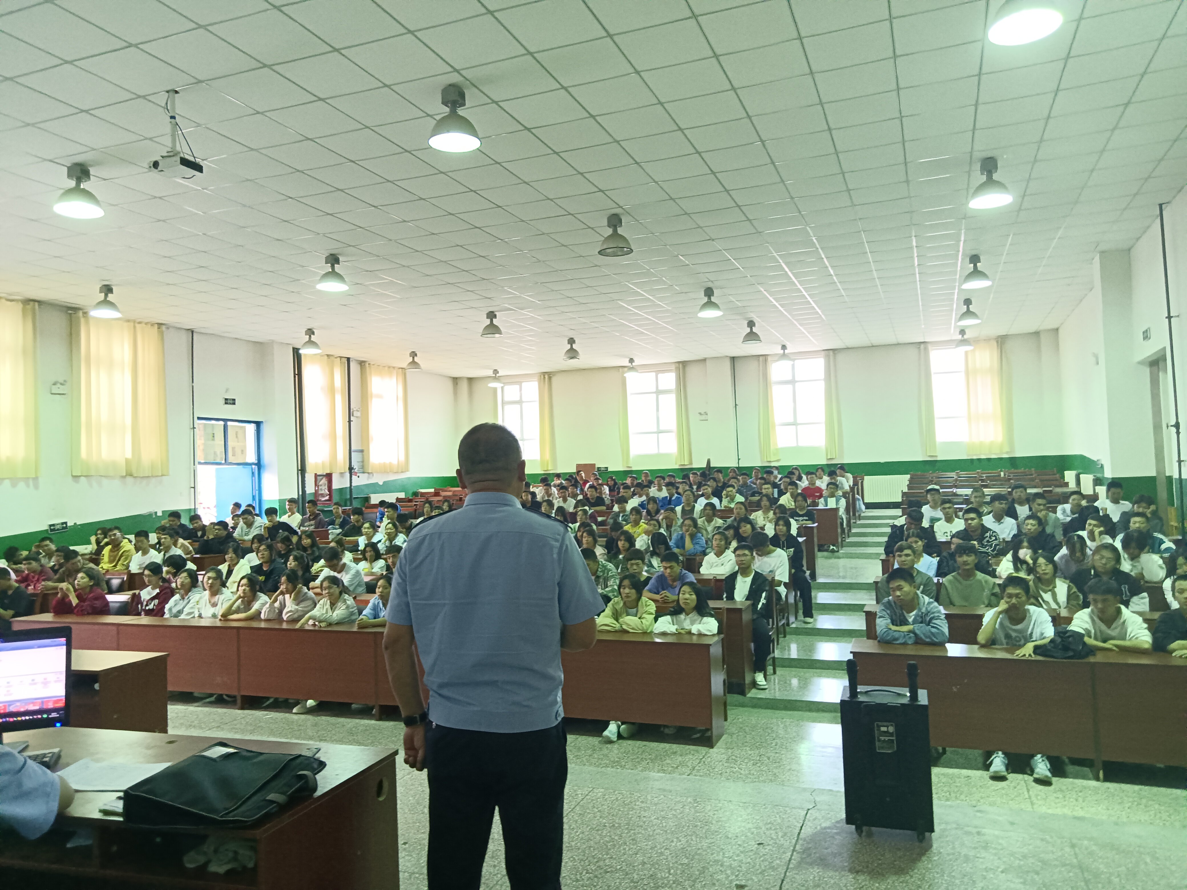 本次讲座特邀国保支队的葛明警官为分院新生进行讲解,葛警官带领大家学习了习近平总书记关于安全生产、特别是安全红线重要论述,普及了相关的安全知识。葛警官通过分析典型案例向同学们详细地介绍了校园网络安全的重要性,引导师生要抵住诱惑、提高警惕,加强自我防范,加强网络安全防护,有效防范网络安全风险。