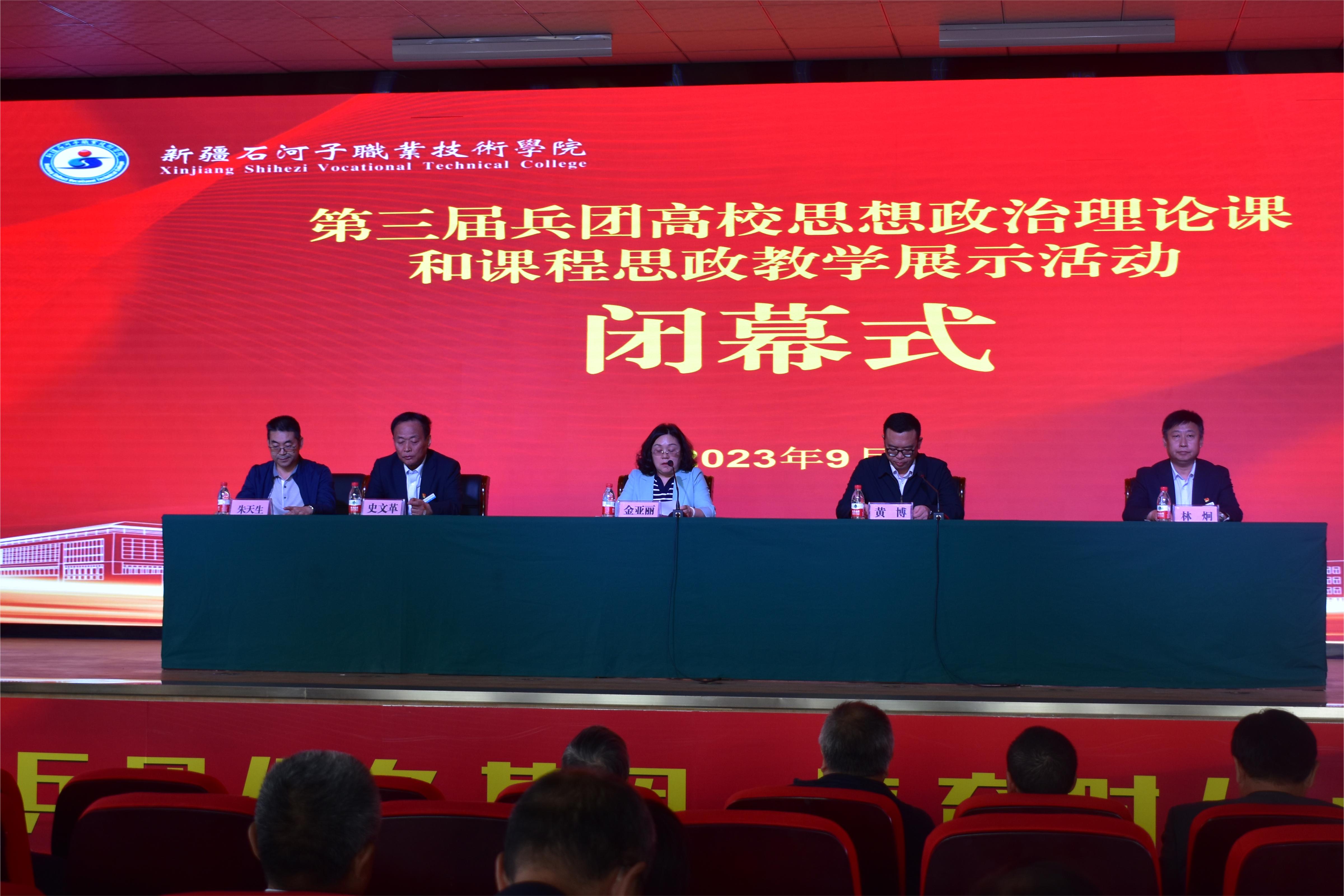 (王需 杨慧报道)9月20日上午,2023年第三届兵团高校思想政治理论课和课程思政教学展示活动在在Beat365中文官方网站南附楼三楼圆满落下帷幕。兵团教育局思政处处长金亚丽、第八师教育局副局长黄博、学院党委书记史文革、学院院长林炯出席闭幕式。黄博副局长主持会议,兵团各院校领导、评委专家、各高校参赛教师和相关工作人员参加了闭幕活动。