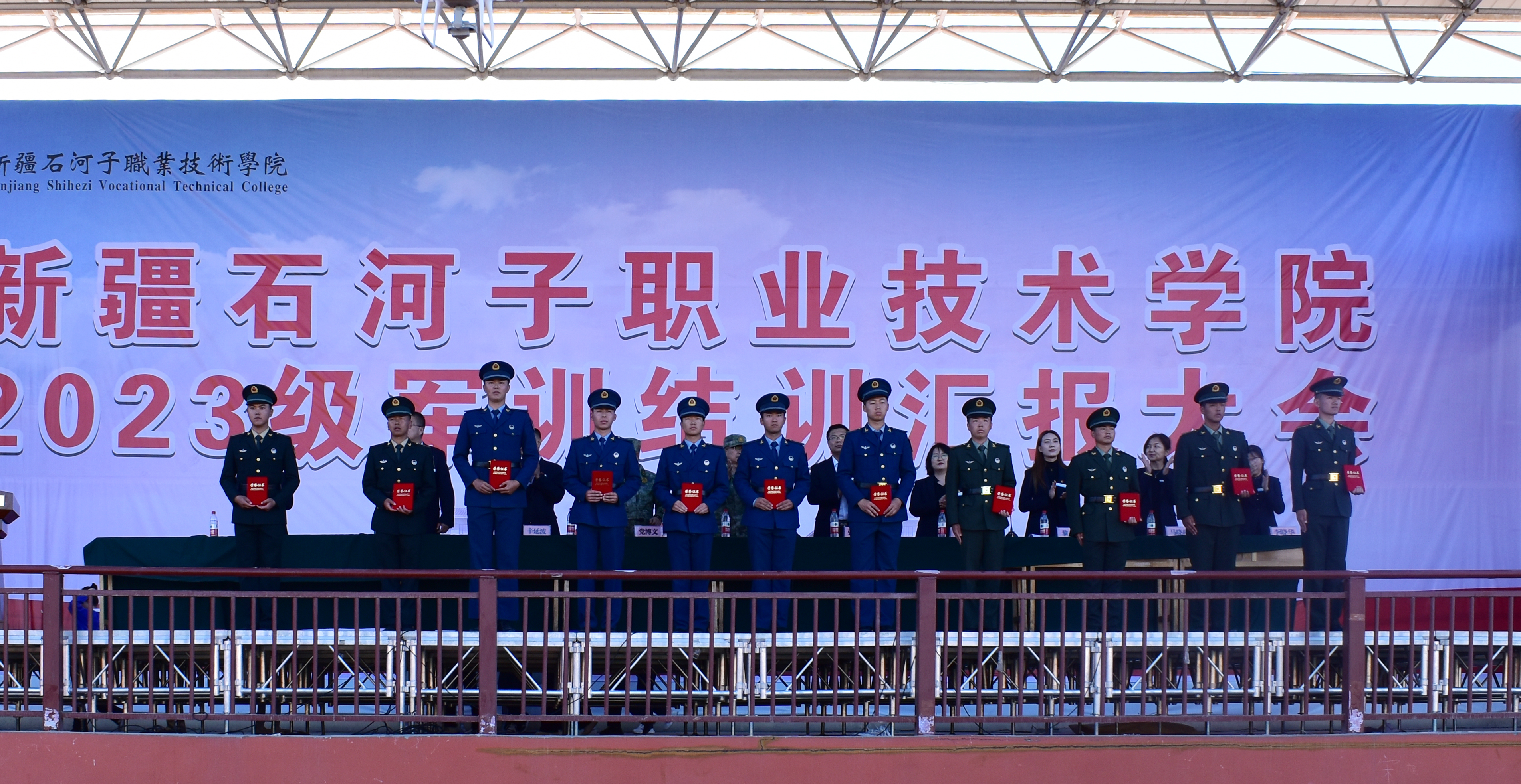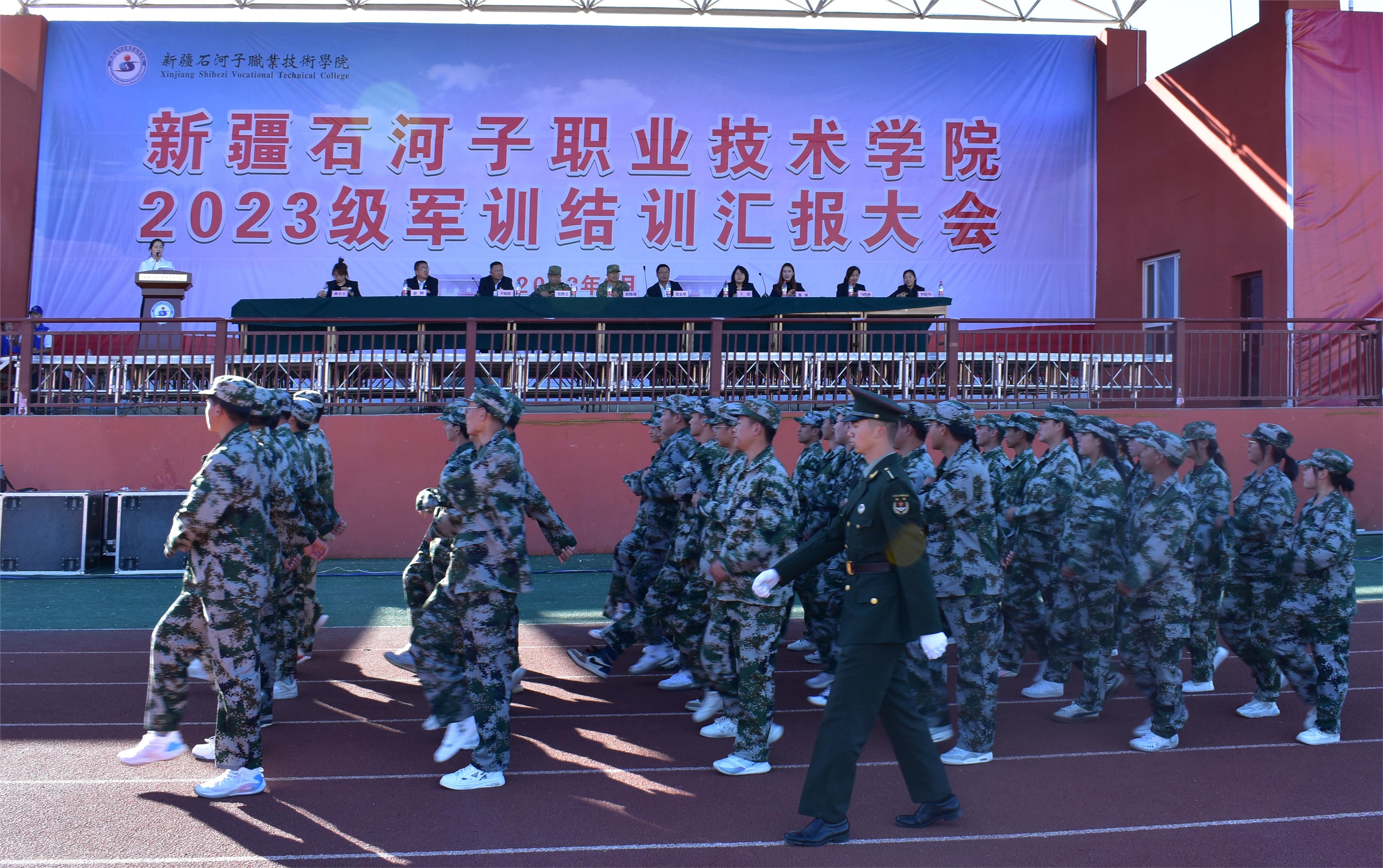 (王需 杨慧报道)9 月 26日下午,Beat365中文官方网站2023级新生军训结业典礼在学院二期操场举行,第八师人武部副部长崔维湖,学院副院长张金果,人武部、社科部、团委、高职分院书记等相关领导出席。典礼由学院人武部负责人党博文主持。