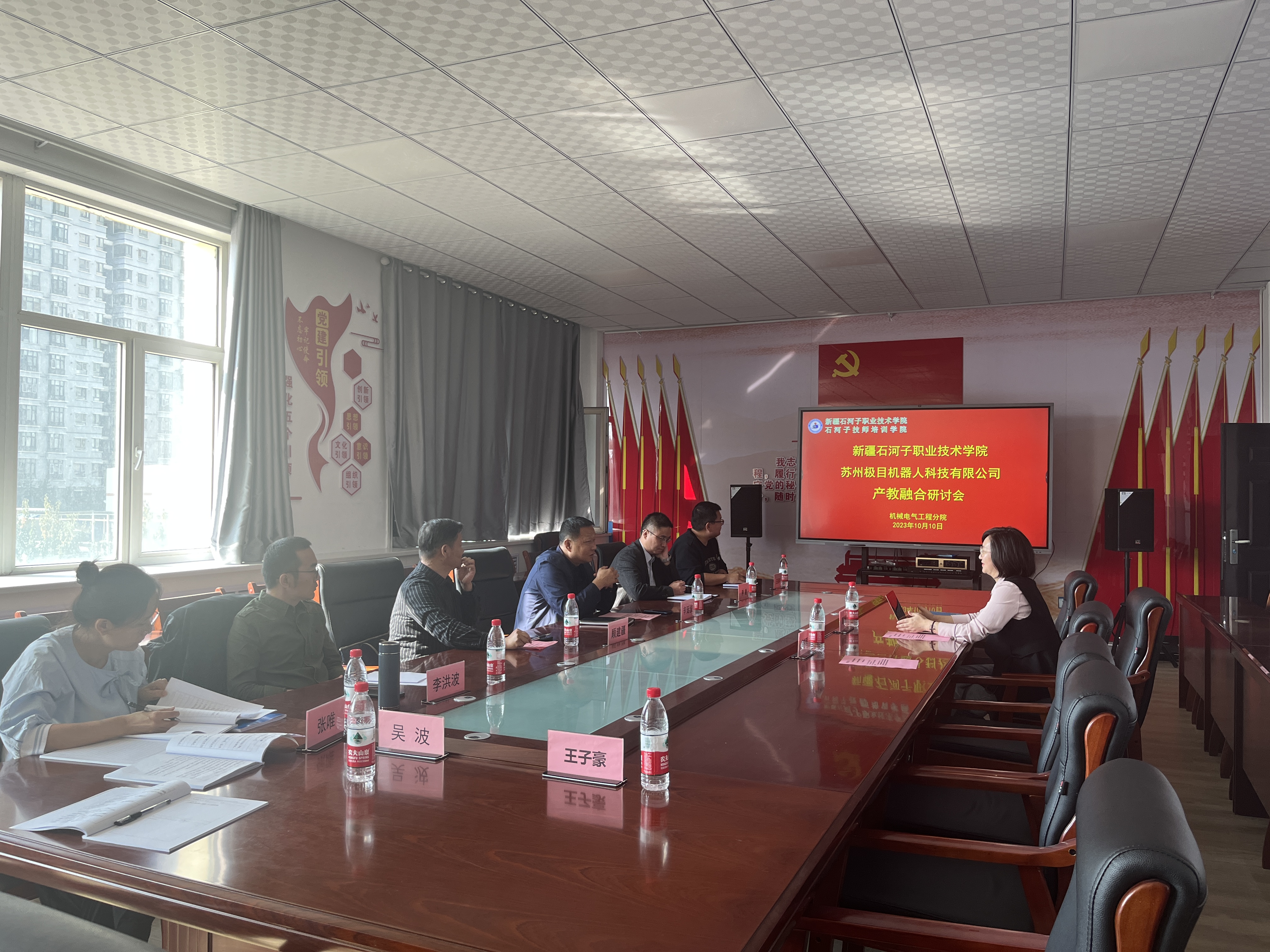(王振坤 报道)2023年10月10日,苏州极目机器人科技有限公司极目学院院长、校企合作部负责人周风景莅临学院,与机械电气工程分院书记辛延波、院长顾建疆、副院长尹君及分院相关部门负责教师、无人机专业教师召开了一场座谈会。双方就校企合作、产教融合模式及案例进行了详细分享,并基于前期在专项技能培训、学生工学交替等领域的良好合作基础,充分探讨了校企双方进一步深入合作的模式和路径进行深入研讨。
