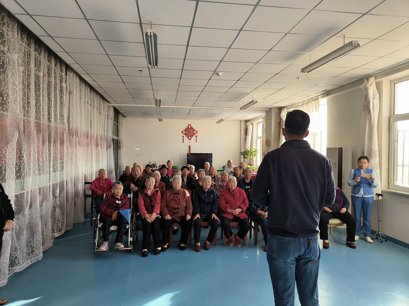 抵达养老院后,志愿者们在活动室为老人们表演了精彩的文艺节目,美妙的音乐、欢乐的笑声使现场气氛其乐融融,志愿者们朴实而真诚的行动表达了对老人们的关爱,让平日清静的敬老院呈现一派活跃、祥和的气氛。志愿者们小心搀扶着行动不便的老人们前往老年公寓,帮助他们打扫卫生、整理被褥,耐心与老人聊起家常,询问老人身体状况、生活情况。志愿者们围坐在老人们的身边,认真倾着老人们回忆过往光辉而艰辛的岁月,并为老人送上真诚的祝福,字字句句都寄托着美好的期冀,刻进心灵的交流让老人们感受到不是亲人胜似亲人的关怀和温暖。