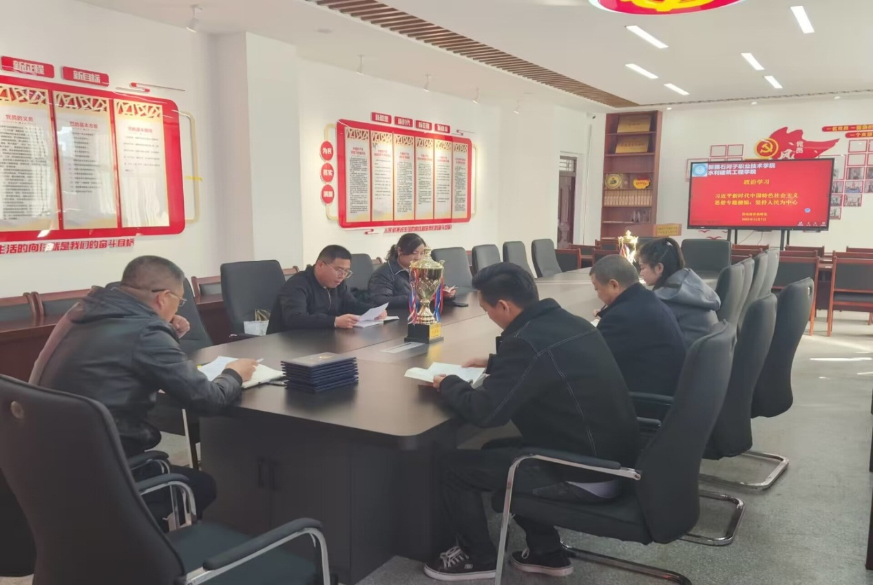 (俞峰 报道)11月7日上午11点30分,劳动教育教研室在水利建筑工程分院B104室组织专题学习活动,深入学习研讨习近平新时代中国特色社会主义思想专题四“坚持以人民为中心”,学院全体劳育教研室教师参加学习。学习由水建院党总支书记兼劳育教研室主任俞峰主持。