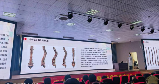 乔海峰副主任医师、杨红鑫主治医师分别作了脊柱弯曲异常,近视的防控等健康知识讲座。讲座中,两位专家对各种学生常见病的病因、易感染人群、症状、防治等做了详细生动的讲解,尤其对视力低下、龋齿、肥胖病、脊柱侧弯、艾滋病等疾病提出了科学的防治方法,专家还为学生们精心地准备了“每日营养餐食谱”,呼吁同学们注重饮食卫生和营养,养成良好卫生习惯,加强锻炼,增强体质。学生们认真听讲,积极参与互动交流,纷纷表示通过讲座加强自身对常见病的预防和控制能力,提高了健康素养知识。