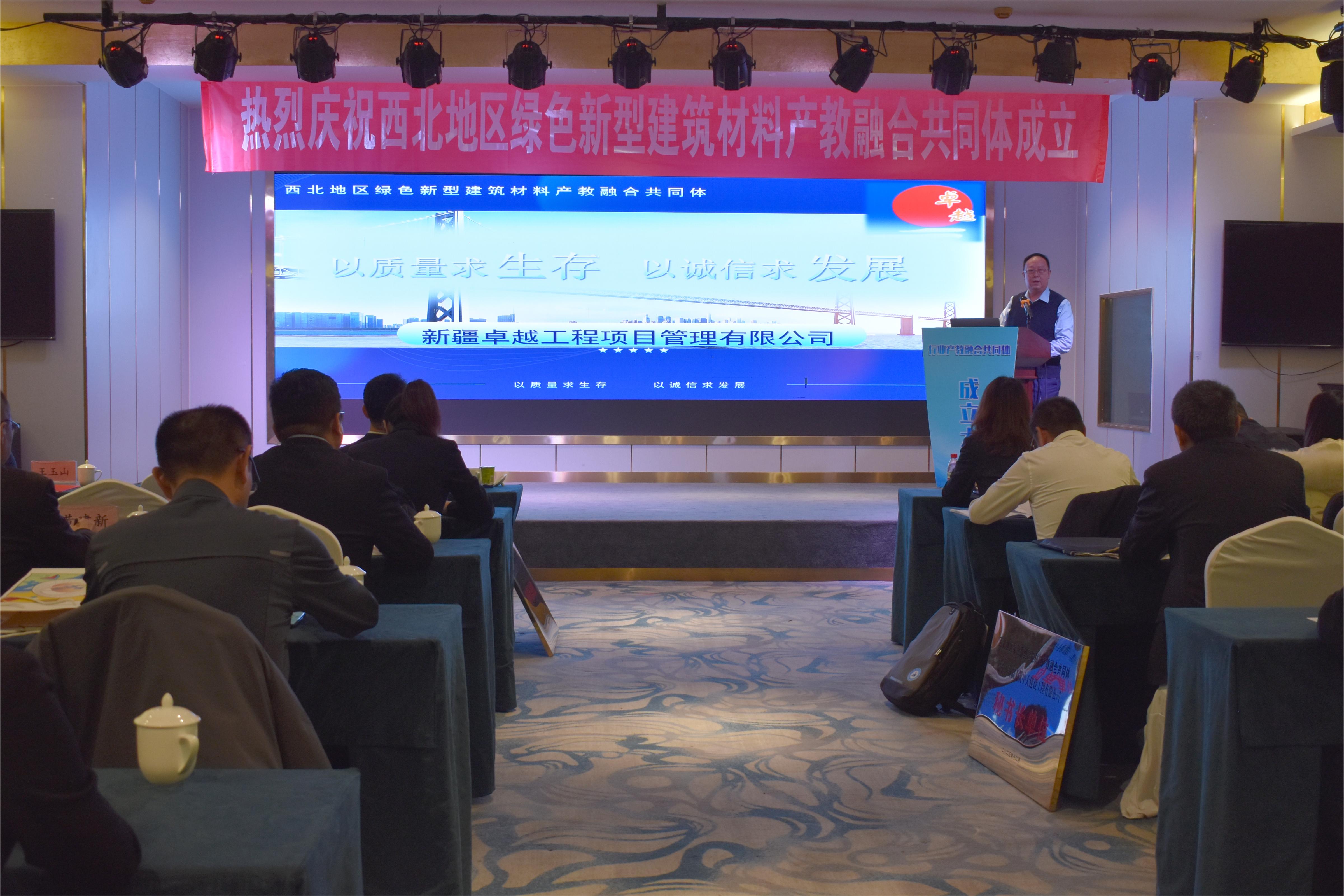(王需 杨慧 袁晓栋报道)2023年12月1日上午,石河子大学、新疆天筑建工集团有限公司与Beat365中文官方网站共同申报的西北地区绿色新型建筑材料产教融合共同体成立大会在润昌大饭店三楼昌胜厅举行。19个院校企业代表出席会议,Beat365中文官方网站水利建筑工程学院副院长张婷主持会议和授牌仪式。