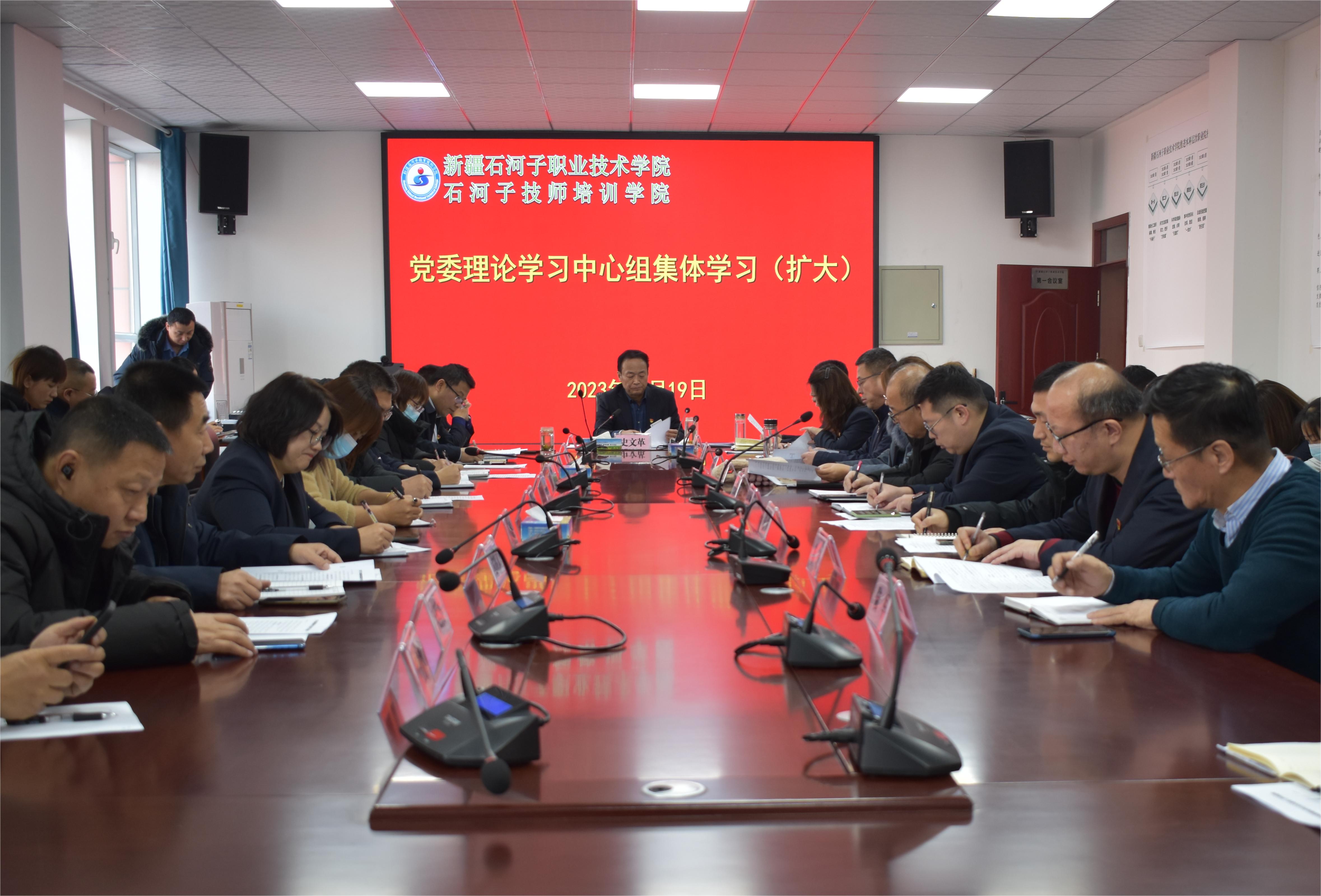 (王需 杨慧报道)2023年12月19日上午,Beat365中文官方网站党委在行政楼3楼会议室举行第27次理论中心组集体学习(扩大)会议,党委书记史文革主持会议,学院院长林炯,纪委书记万祥军,副院长马彩梅、张金果、褚衍兵,各部门、各二级学院负责人参加会议。史书记传达学习习近平总书记谈以学铸魂、以学增智、以学正风、以学促干,怀进鹏:厚植爱国情怀 培育时代新人,职校升本不忘“本”,才能稳中求进等文件精神。