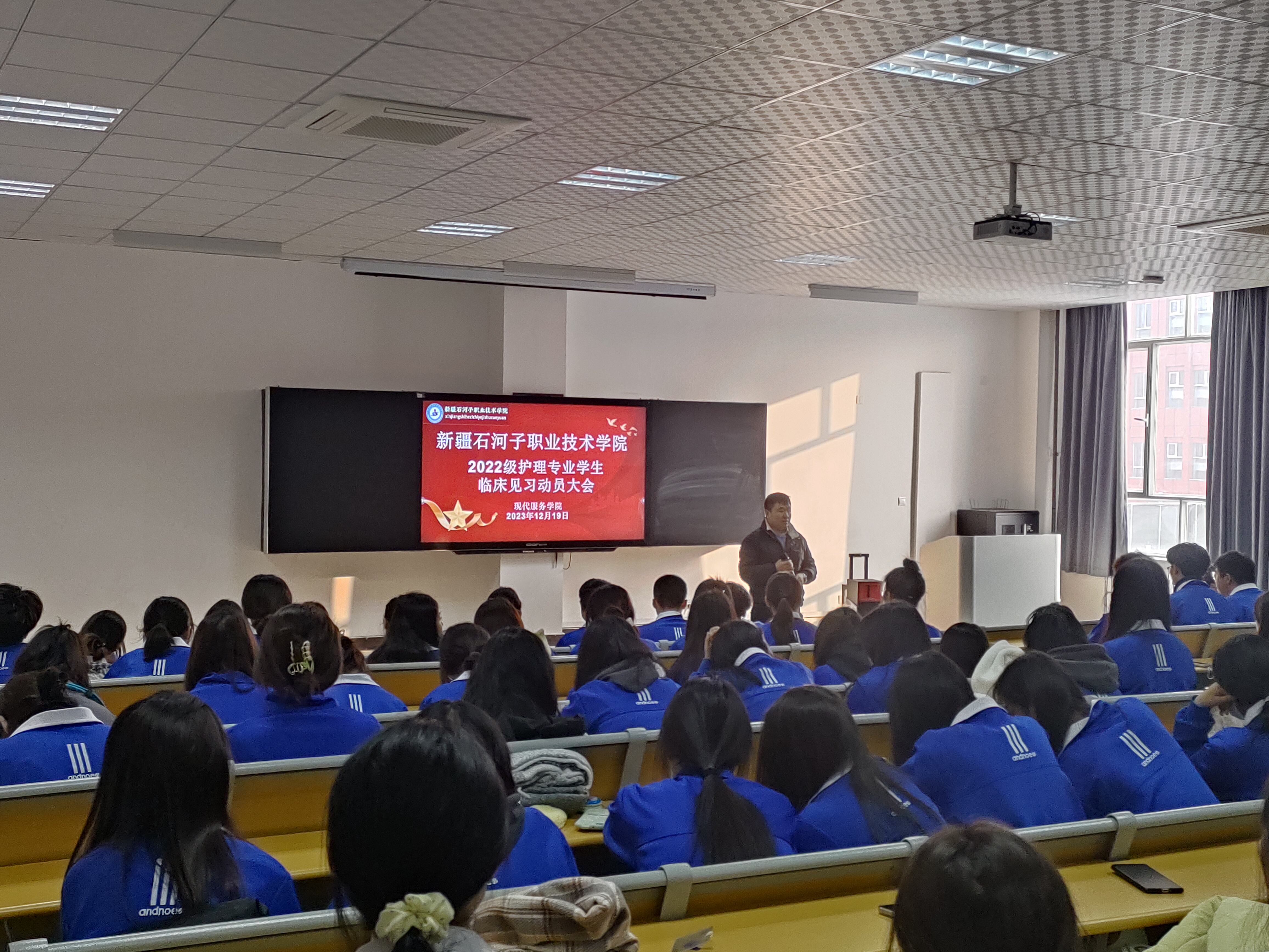 (苗梦雪 报道)为深化护理教育教学改革,现代服务学院护理学专业于2023年12月19日在北副楼201阶教组织召开了2022级护理专业见习动员大会,现代服务学院院长蒋小玉、副院长卡米来及护理专业全体教师出席会议,会议由王似雄老师主持。