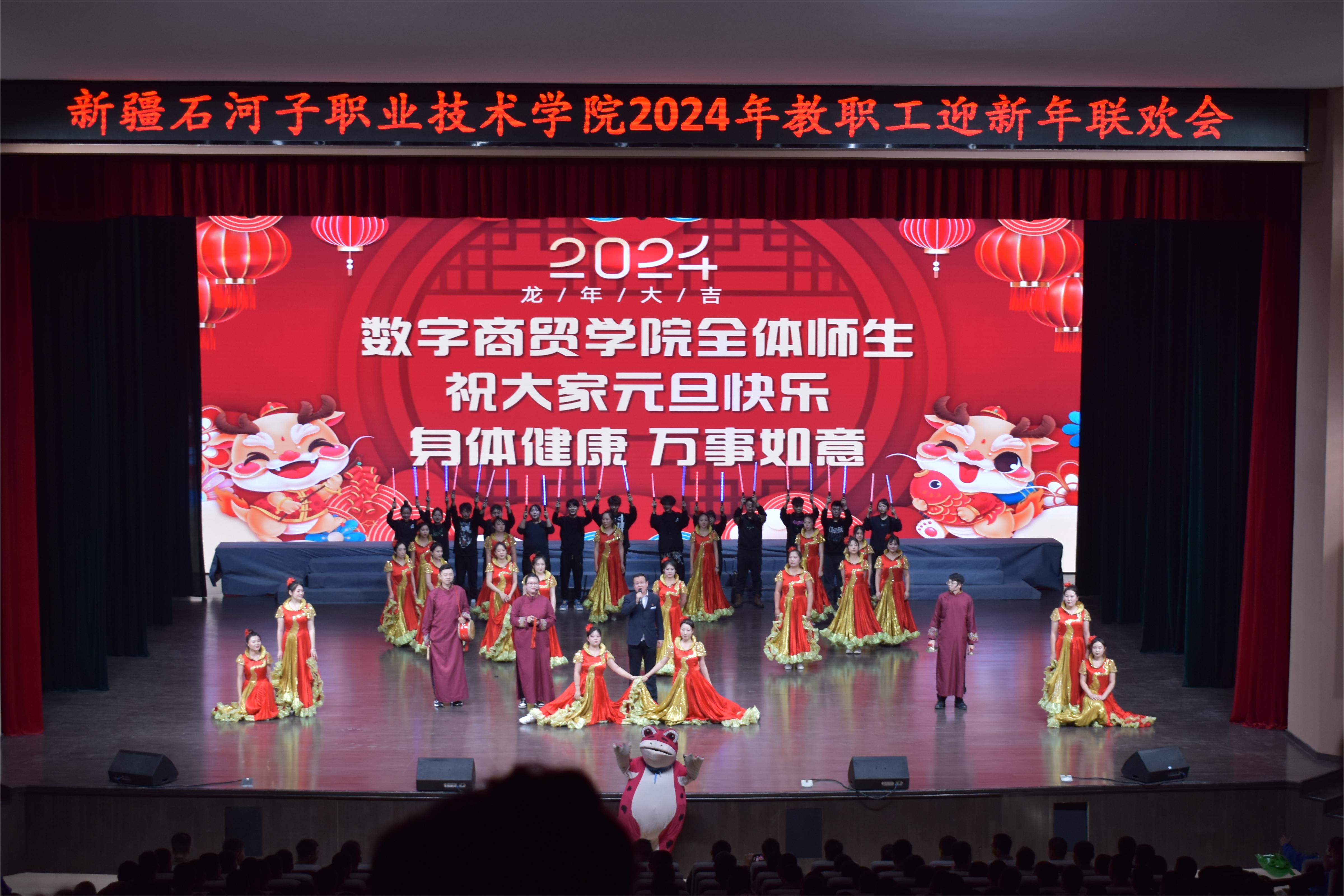 随着舞台灯光的亮起,校歌《石职之歌》正式拉开了学院2024元旦晚会的序幕,大家满怀憧憬共同迎接新年的到来。开场结束后,学院党委书记史文革、院长林炯、纪委书记万祥军,副院长马彩梅、张金果共同为大家带来新年祝福。院长林炯致辞肯定并感谢学院师生一年来的成绩与付出,学院在产教融合、教育教学、科研创新、招生就业、赛事承办各方面均取得历史性突破,盈车嘉穗,硕果累累。希望全体师生在2024年携手共进,赢站未来,为区域经济高质量发展贡献力量!