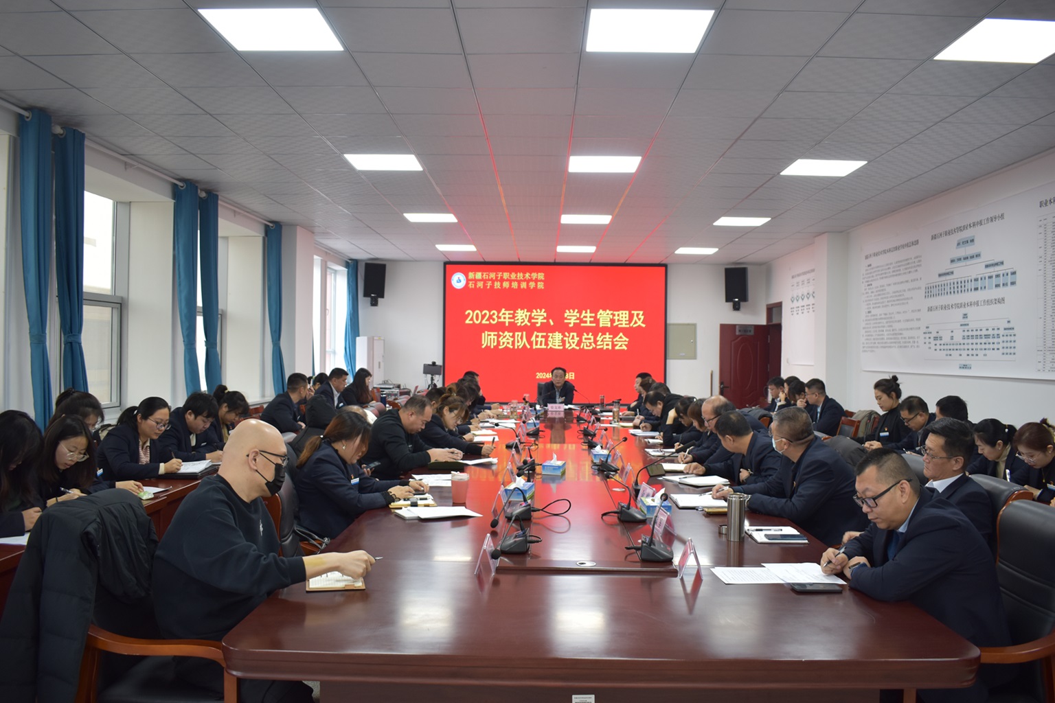 (王需 徐千然 报道)为进一步准确把握学院发展的矛盾与任务,总结工作、分析形势、部署任务,深入推进“十四五”规划和双高校及申本建设,推动各项工作的规范化、科学化,引领全院师生奋力“走在前列”,2024年1月8日,学院在行政楼三楼会议室召开教学管理、学生管理及师资队伍建设总结会。学院党委书记史文革主持了本次会议,学院院长林炯、纪委书记万祥军,副院长马彩梅、张金果、褚衍兵出席会议,部分二级学院教师代表参加会议。