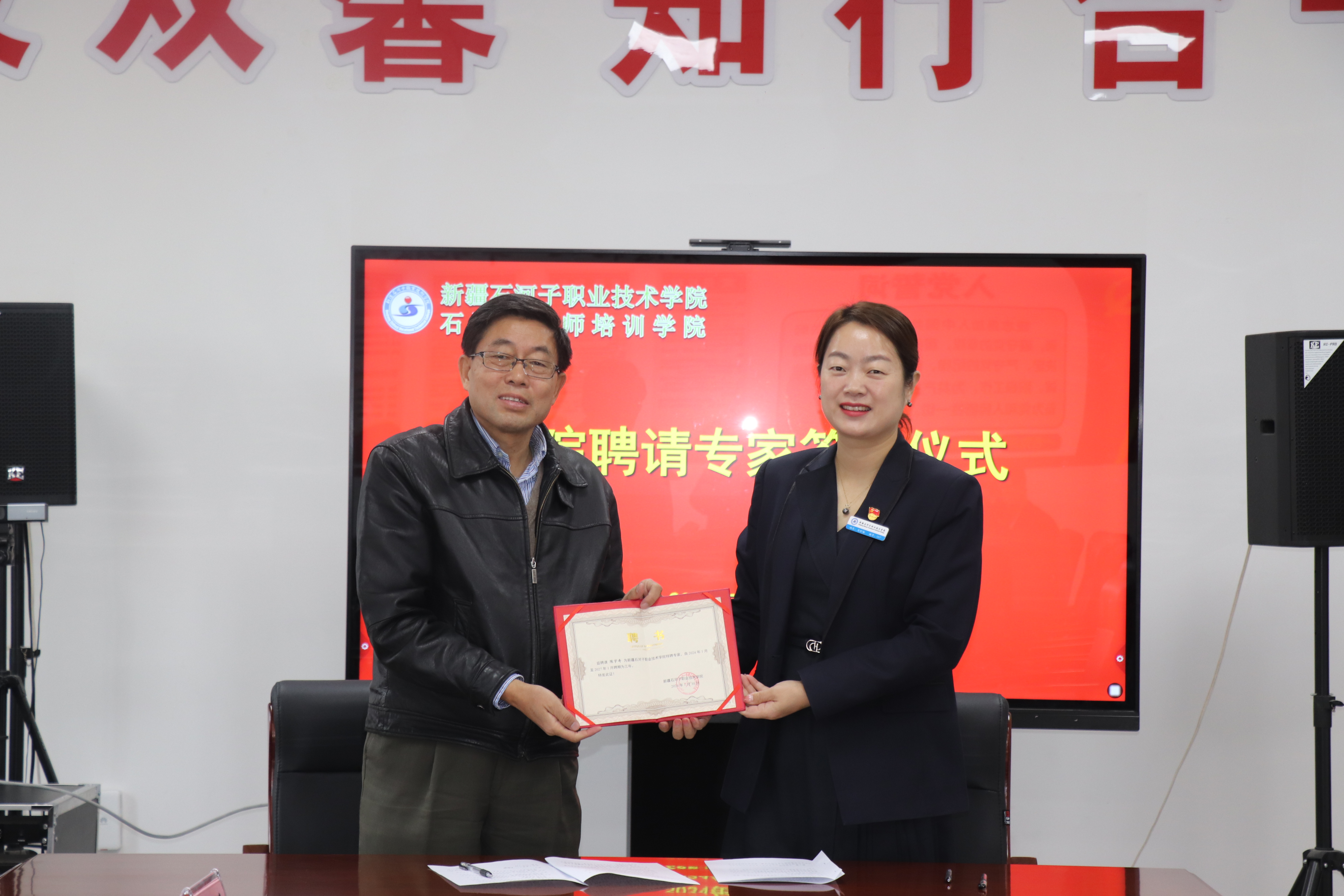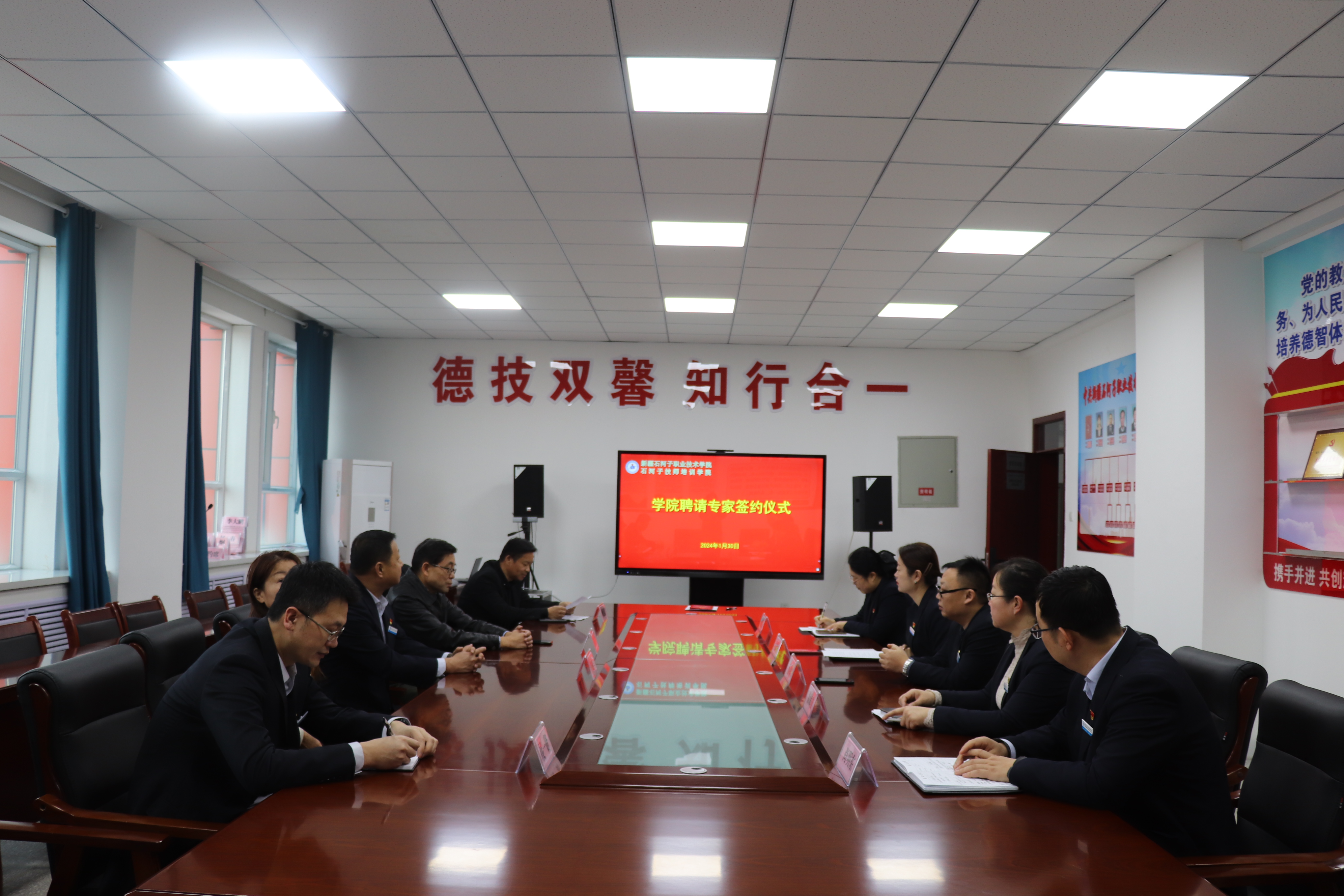 马彩梅院长代表学院党委欢迎陈博士加入学院大家庭,特聘专家是优化职业教育师资队伍、促进职业教育发展的需要,希望陈博士以卓越的学术成果和深厚的科研实力,为兵团职业教育高质量发展和学院新征程注入新的动力。陈宇奇博士热情洋溢地发表了对学院未来发展的一些设想,希望能够与学院教师团队一起发挥专业优势,为社会培养出更多高素质、高技能的应用型专门人才。陈宇奇表示,“作为兵团人,兵团是我的根、我的魂,希望能够为家乡职业教育的发展尽一份力。”