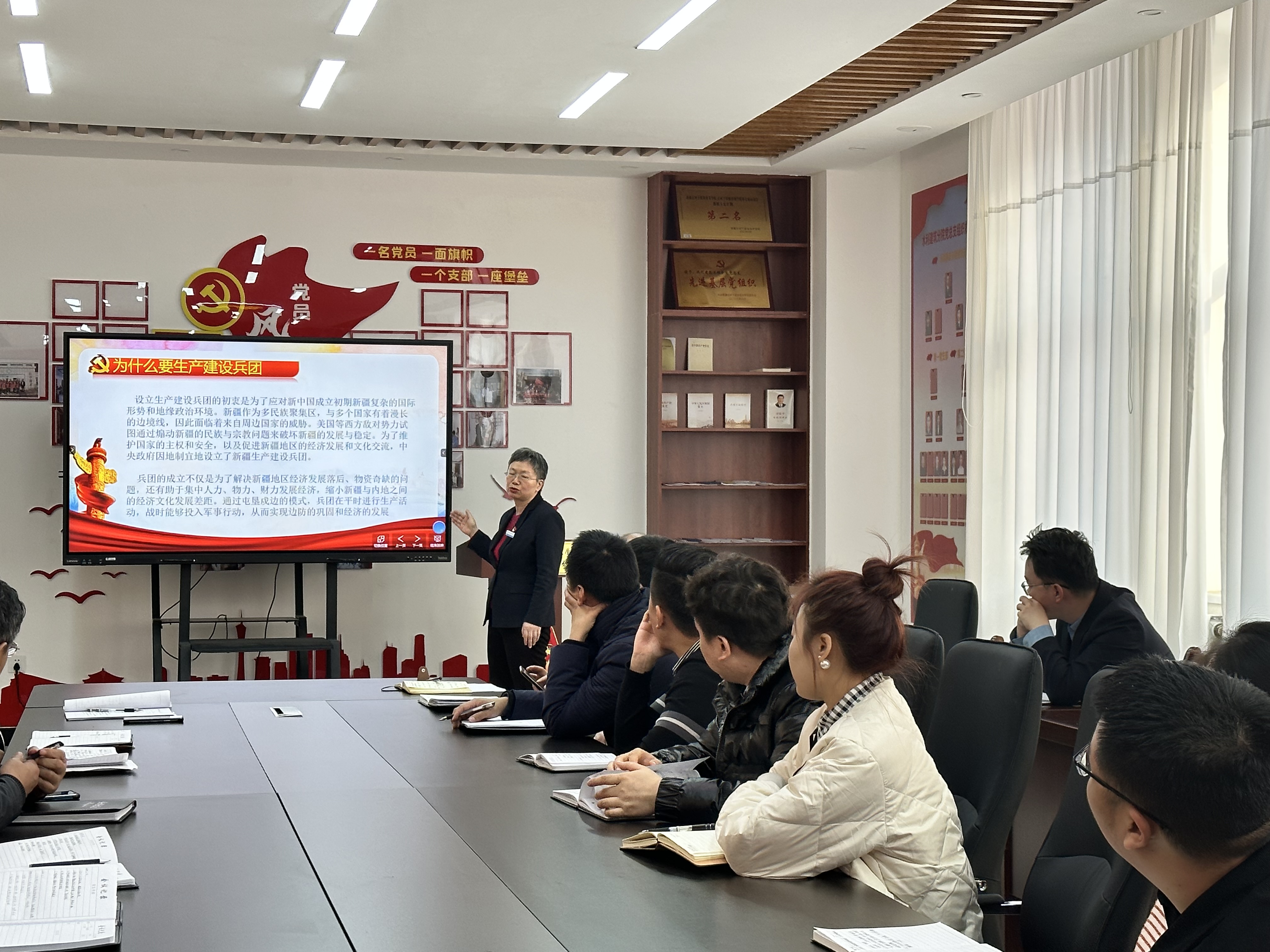 本次活动旨在让全院教师们了解兵团历史,感悟兵团精神。韩东书记强调,兵团精神凝聚着几代军垦人的智慧和汗水,希望通过此次活动,让每一位教师都能深刻理解和感受到兵团精神的伟大。学院教师共同观看纪录片《兵团记忆》,纪录片详细记录了兵团成立70年来的光辉历程,展现了兵团人艰苦创业、无私奉献的精神风貌。在“传承军垦家风”为主题的座谈会上,王海英老师、吴合老师分享了各自的家风故事,分别讲述了自己的父辈、祖辈们在这片土地上挥洒汗水,以无私奉献的精神建设边疆的事迹,这些故事深深打动了每位与会教师。与会教师纷纷表示,通过本次活动,加深了对兵团精神的理解和感悟,在今后的教学生涯中,将以实际行动弘扬和传承兵团精神。