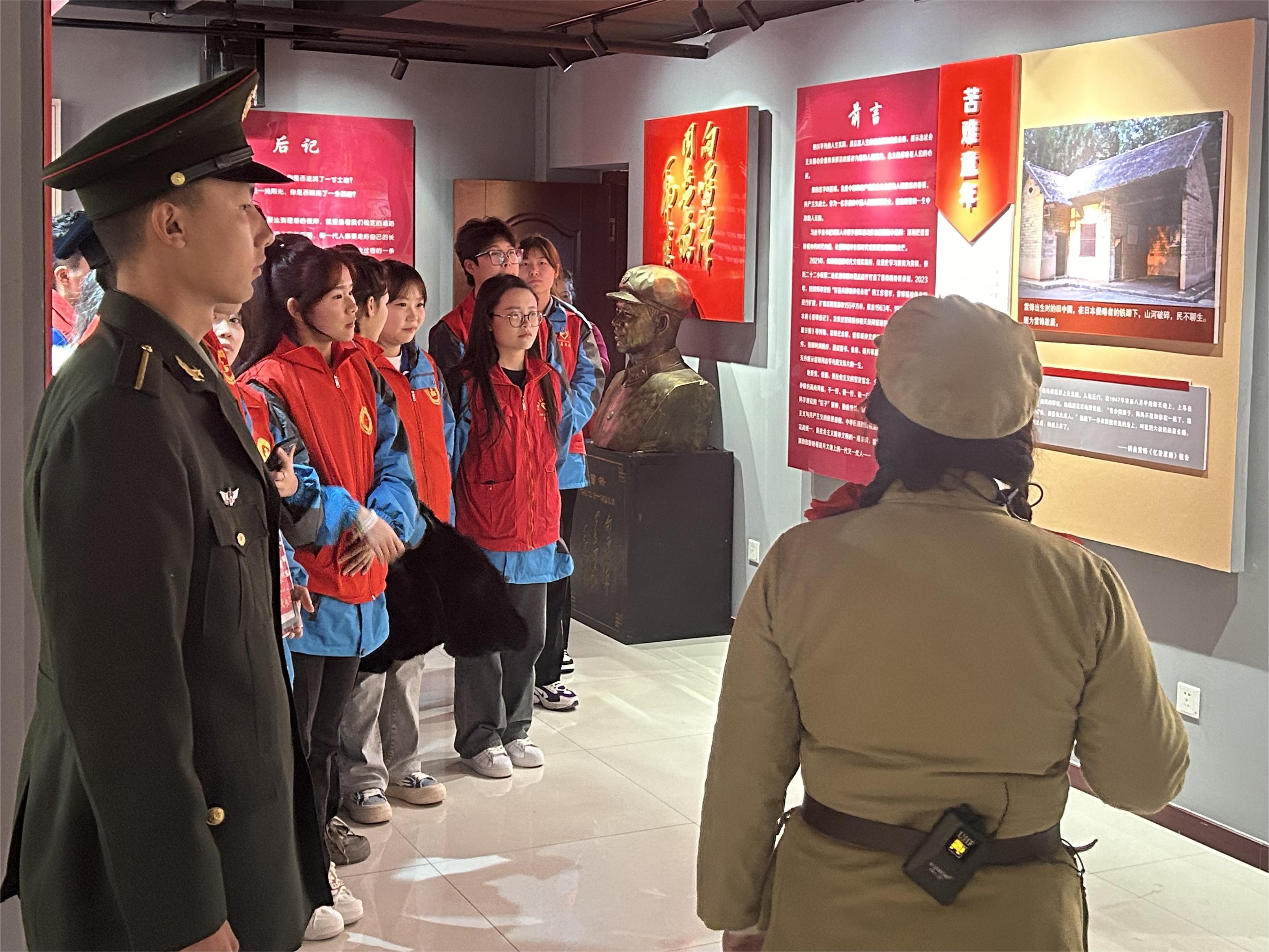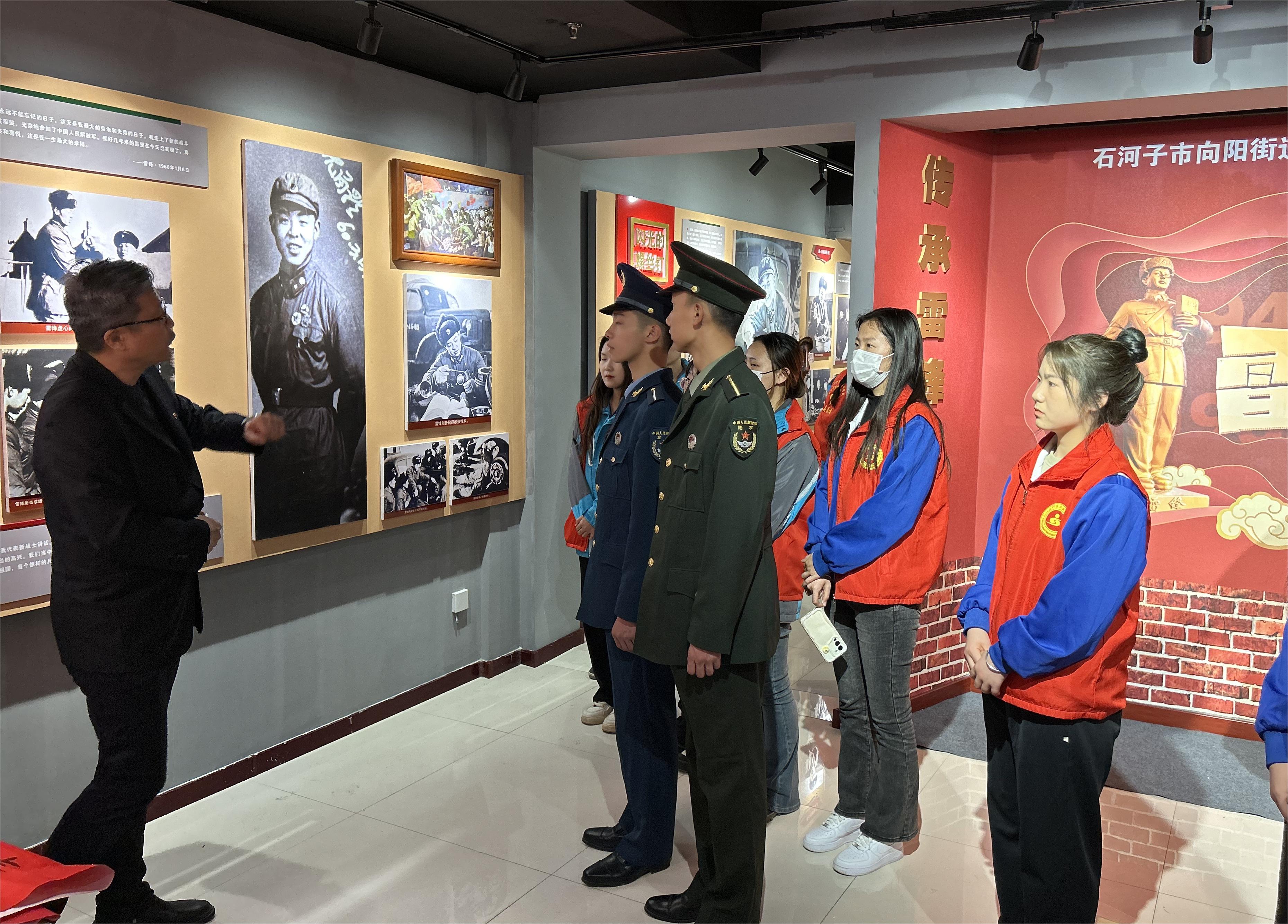 在场馆内,22-2社区党委书记夏中华为参观师生详细介绍了雷锋同志的生平和工作经历,师生们认真参观各个展区,聆听现场讲解,仔细观看实物和图文资料,追忆雷锋生平,学习雷锋事迹,通过一件件实物、一幅幅照片、一段段文字,了解雷锋同志平凡而伟大的一生,切身感受了雷锋崇高的革命理想、伟大的奉献精神和干一行、爱一行、专一行、精一行的“螺丝钉精神”。