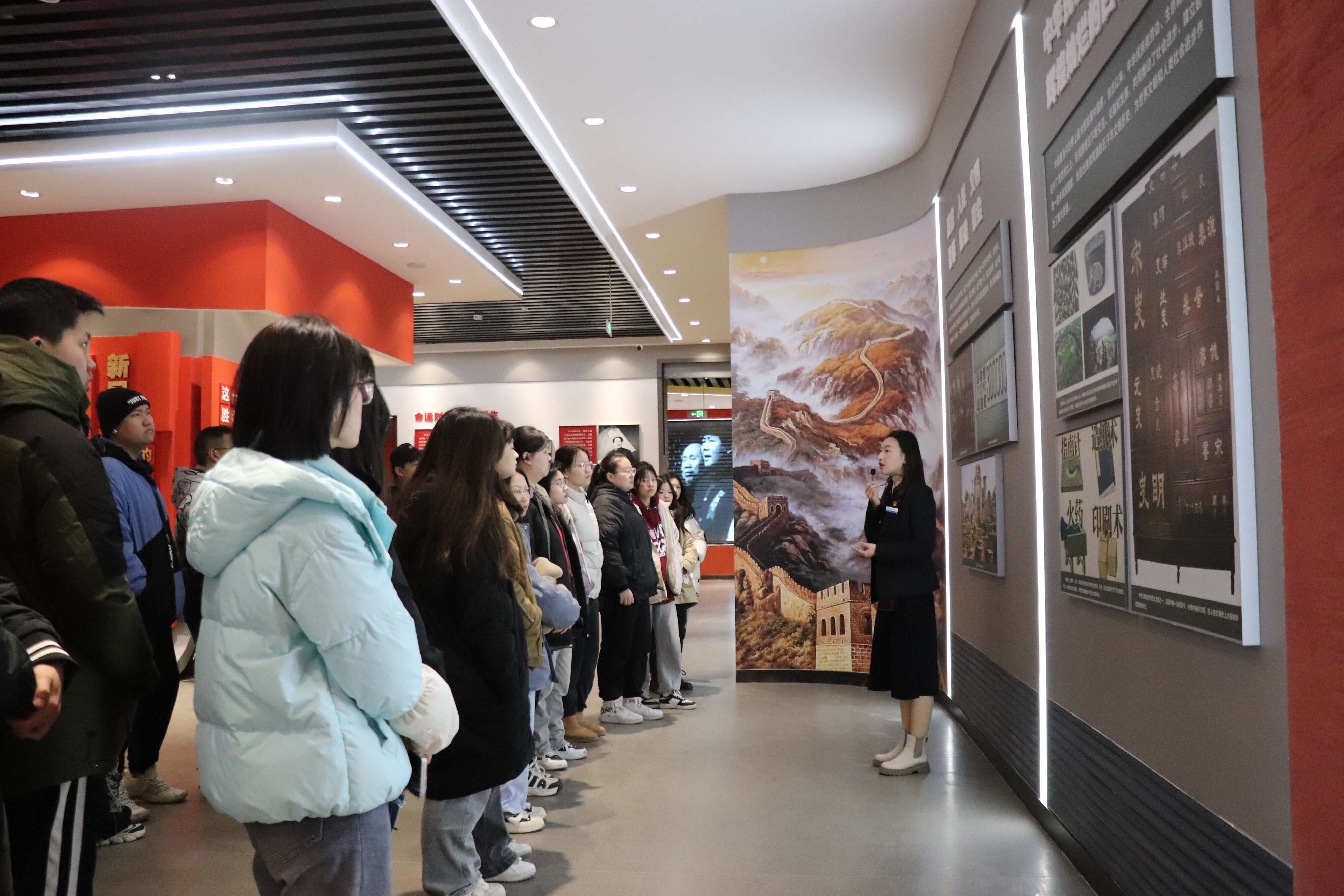 同堂共研、多向督导,确保思政首课含金量。学院切实强化“开学第一课”的思政属性,坚持以生动事例诠释科学理论,督促马克思主义学院通过各种务实举措提升学院“开学第一课”教学实效。一是重点讲好思政“开学第一课”,马克思主义学院教师以沉浸式爱国主义实践教育基地为载体,带领学生在场馆中行走中上党史课,把思政小课堂同社会大课堂结合的创新教学,也是推动思政课改革创新、让思政课“燃起来,活起来”的生动实践。二是学院领导带领500余学生观看原创舞台剧《大漠誓言》,在沉浸式大思政课中赓续兵团红色血脉,激励新时代的青年用行动践行“请党放心 强国有我”的誓言。